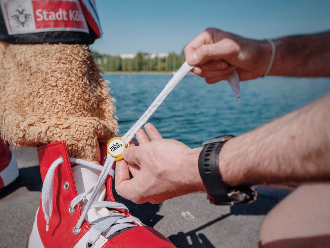 Näher dran am echten Wettkampffeeling ist man seit dieser Woche in Köln. Dort wurde eine 5,4 Kilometer lange Laufstrecke rund um die Regattastrecke am Fühlinger See eingerichtet, auf der man jetzt jeden Tag ein bisschen Wettkampffeeling erleben kann. Natürlich unter Berücksichtigung des Mindestabstands und der Hygienevorgaben. Und mit den Zeitmessanlagen von Mika-Timing, die auch bei den weltweit größten Marathon- und Laufevents von Berlin und Hamburg über London bis hin zum Boston- und Chicago-Marathon eingesetzt werden.