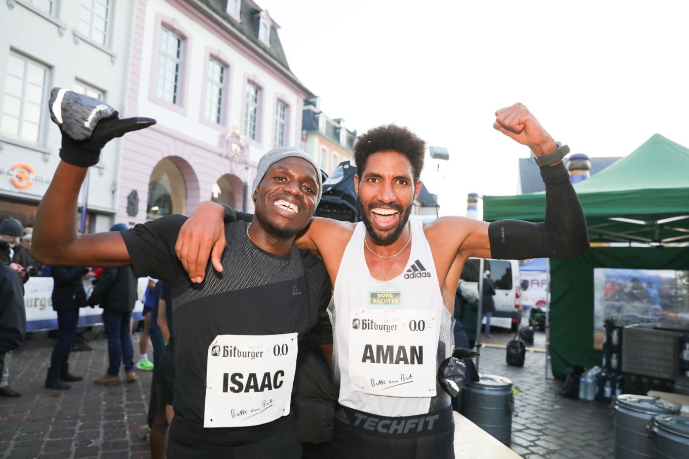 Fast hätten die Zuschauer in Trier eine halbe Stunde später den zweiten deutschen Sieg feiern können. Doch Marathon-Shootingstar Amanal Petros (Foto oben rechts) vom TV Wattenscheid musste sich in einem superspannenden Rennen mit 22:45 zu 22:44 Minuten dem Vorjahressieger Isaac Kimeli aus Belgien beugen müssen.