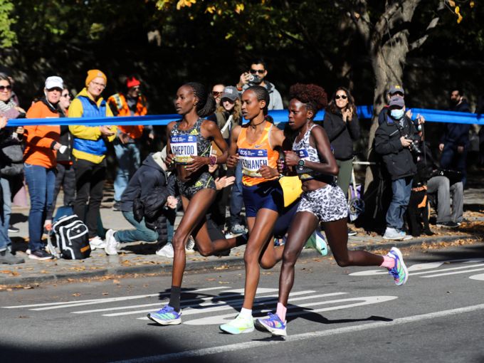 Bei den Frauen hatte eine Gruppe von neun Läuferinnen die Halbmarathonmarke nach 72:43 Minuten erreicht. Zehn Kilometer vor dem Ziel hatte sich dann eine dreiköpfige Spitzengruppe gebildet, die bis auf den letzten Kilometer zusammen blieb: Neben der Olympiasiegerin Peres Jepchirchir rannten die ehemalige Halbmarathon-Weltrekordlerin Ababel Yeshaneh und Viola Cheptoo Lagat. Die Schwester des früheren Weltklasse-Läufers Bernard Lagat (Kenia/USA) lief dabei ein sehr starkes Marathon-Debüt. Doch auf dem letzten Kilometer hatten weder sie noch Ababel Yeshaneh eine Chance gegen Peres Jepchirchir. „Es ist eine große Ehre, zu den Siegerinnen des New York-Marathons zu gehören“, sagte Peres Jepchirchir. „Die Vorbereitungszeit war (nach den Olympischen Spielen) knapp, aber ich habe mein Bestes gegeben.“