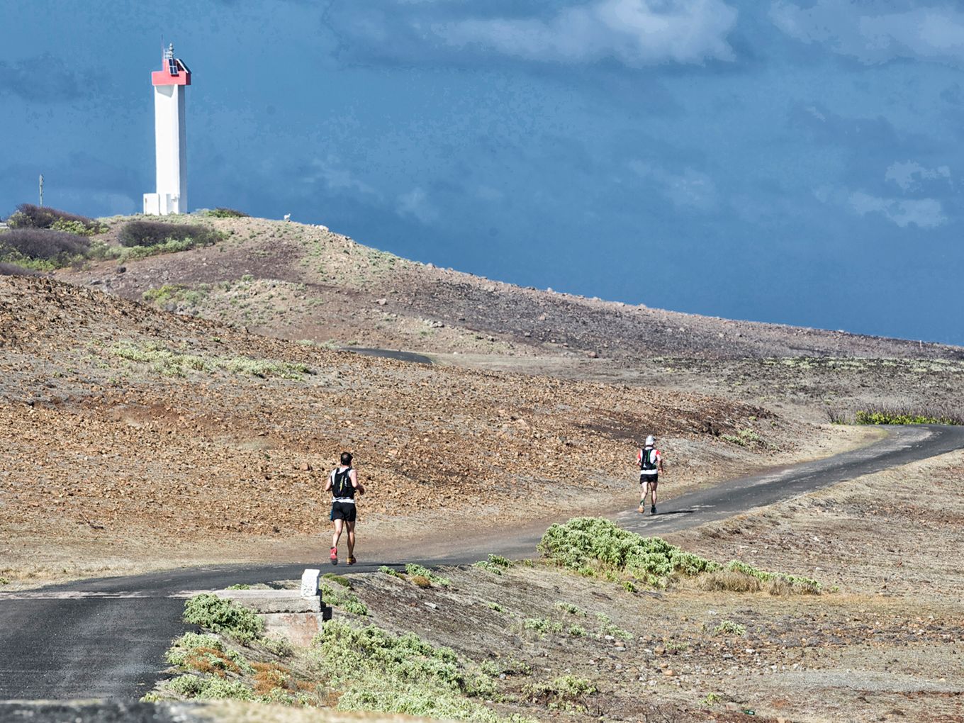 Mit 21 Kilometern ist die Etappe am nächsten Tag fast ein komplettes Inselsightseeing. Zum Auftakt führt ein steiler Aufstieg an 13 Kreuzwegstationen vorbei bis zu einer Wallfahrtskapelle. Hier beginnt das 273 Meter hohe Kalksteinplateau Grande Montagne, das auf Schotterpisten, vorbei an mehreren Windkraftwerken, überquert wird. Steile Betonpisten führen die Läufer wieder zurück auf Meeresniveau, wo an der Ostspitze Désirades der Leuchtturm am Pointe Double passiert wird.