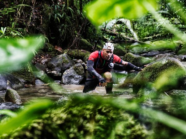 Die erste ist zugleich die technisch anspruchsvollste Etappe. Schon wenige Kilometer nach dem Start verschluckt dunkler, feuchter und schlammiger Bergdschungel die Läufer. Vorbei an einem tief im Urwald liegenden Wasserfall muss ein halbes Dutzend Flüsse durchquert werden, teilweise geht es auf den steilen und von dickem Wurzelwerk durchzogenen Pfaden nur auf allen Vieren voran.