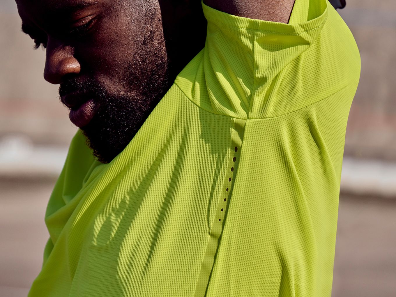 Das leichtgewichtige Shirt wurde speziell für Läufer*innen entwickelt, die auf der Suche nach einem außergewöhnlichen Stil sind. Ein atmungsaktiver Mesh-Strick und eine körperzonenspezifische Belüftung sorgen dafür, dass du auch bei steigendem Tempo kühl bleibst, während reflektierende Details bei schlechten Lichtverhältnissen dafür sorgen, dass du gesehen wirst. Hier kannst du das Shirt direkt bestellen.