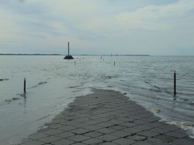 Der Wattranger steht mitten im Meer und beobachtet aufmerksam den Gois. Die Passage du Gois ist eine sogenannte Route Submersible – frei ins Deutsche übersetzt „Unterwasserstraße“. Eine vier Kilometer lange straßenbauliche Kuriosität, die die französische Insel Noirmoutier in der Vendée, im Westen Frankreichs, mit Festlandfrankreich verbindet, das hier simpel „Le Continent“, also der Kontinent, genannt wird.