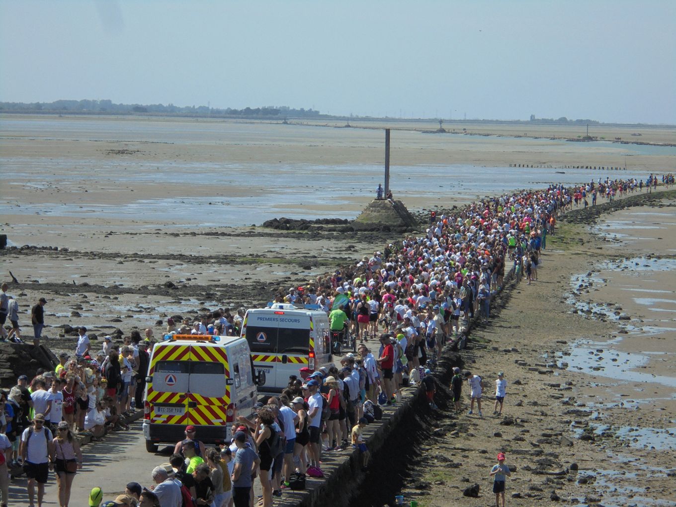 Doch einmal im Jahr haben Muscheln und Krabben Schonzeit. Dann findet immer an einem Samstag im Mai oder Juni (abhängig von den Gezeiten) der Les Foulées du Gois statt, dieses Jahr am 29. Juni bereits zum 36. Mal.