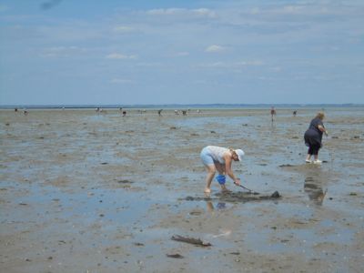 Viele fahren mit dem Auto raus, dass sie neben dem Gois parken und stiefeln kilometerweit ins Watt, bewaffnet mit Eimern, Harken, Schaufeln. So mancher Jäger der Meeresfrüchte endet dann schon mal in einer der Rettungsdalben, wenn er vor lauter Buddelei im Schlick die Zeit vergessen hat.