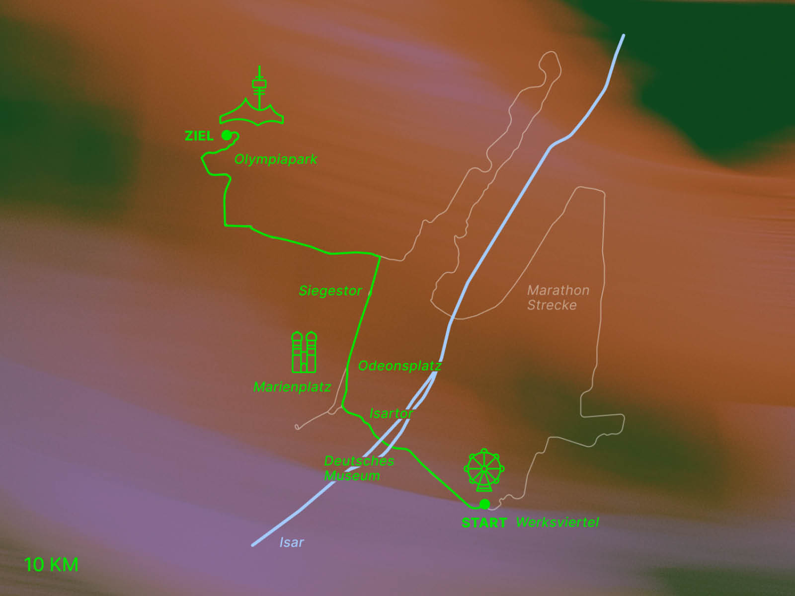 Auch die Strecken des Halbmarathons und des 10-Kilometer-Laufs wurden angepasst. Der Halbmarathon startet neu im Olympiapark, führt durch die Innenstadt zum Sendlinger Tor und dann wieder zurück zum Ziel am Olympiasee. Der Zehn-Kilometer-Lauf beginnt im Werksviertel, überquert die Isar, passiert den Marienplatz und endet ebenfalls im Olympiapark. Auf allen Strecken geht es am Siegestor vorbei. Fabian Schäfer schmunzelt: „Da ist jeder kurz ein Sieger, wenn man da vorbeiläuft.“