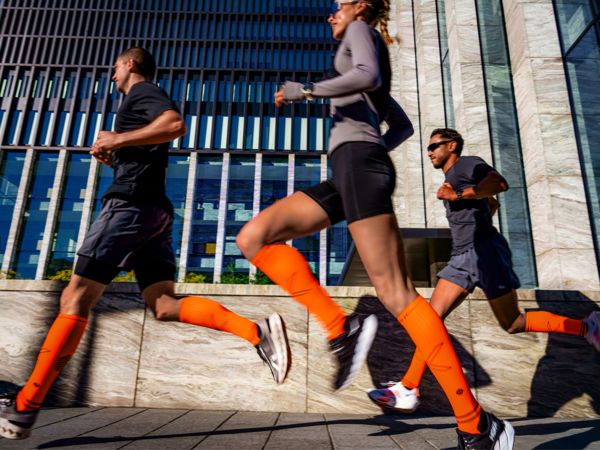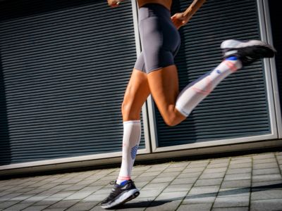 Viele Läufer:innen schwören bereits auf sie: Kompressionssocken. Die knielangen Socken sind vom Knöchel bis unter das Knie aus engen, elastischen Materialien gefertigt. So üben sie gezielten Druck auf Beine und Füße aus, wobei der Druck am Knöchel am stärksten ist und nach oben hin abnimmt.