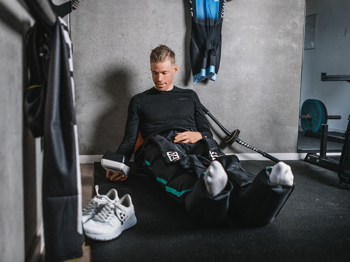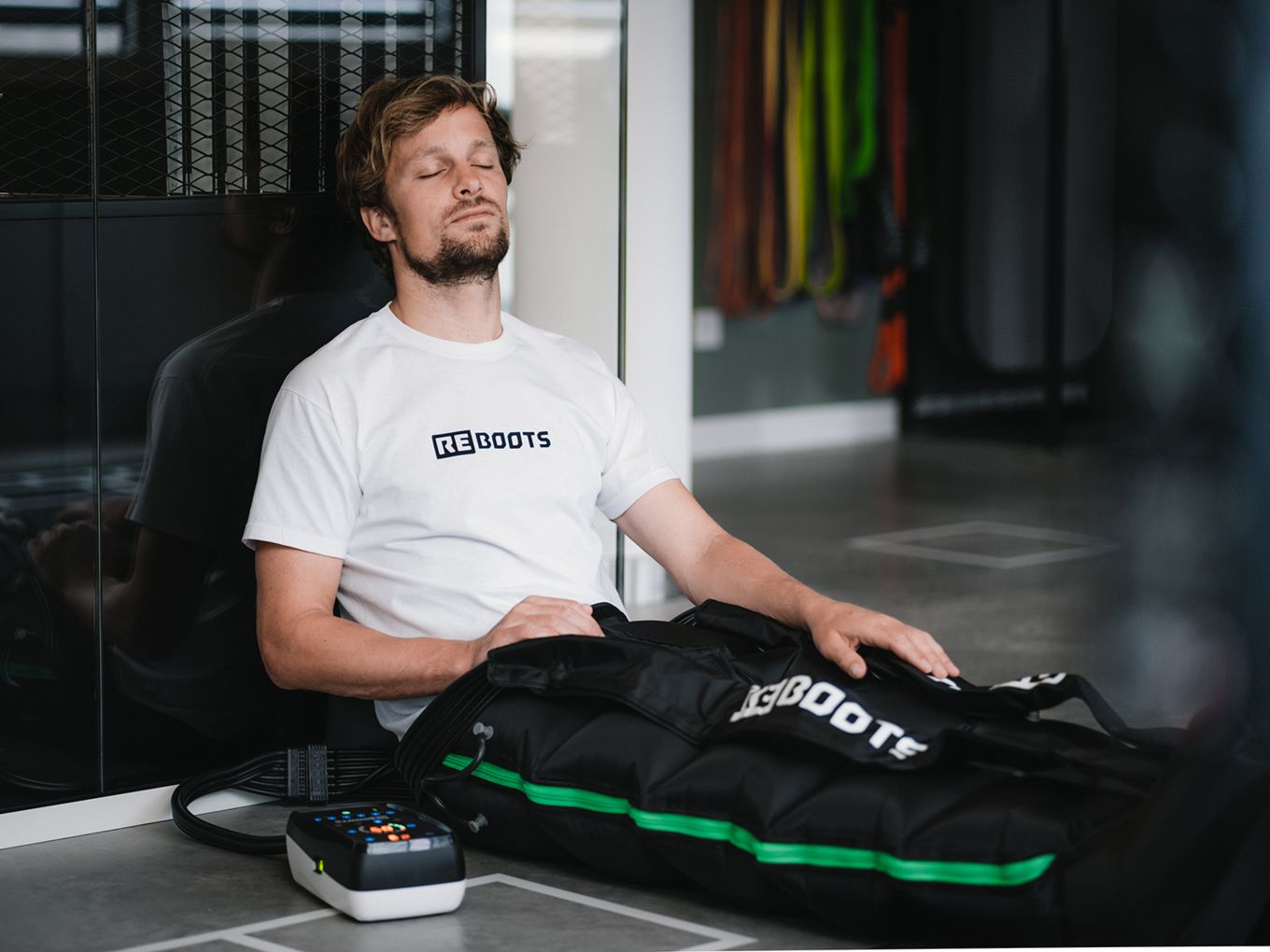 Bei der Reboots Recovery Technologie handelt es sich um die systematische und kontrollierte Anwendung von Druck auf Beine und Gesäß in Form von aufblasbaren Beinmanschetten. Durch die Kompression wird der venöse und arterielle Blutfluss erhöht. Dadurch wird die Regeneration beschleunigt, das Entzündungsrisiko minimiert und somit die Leistungsfähigkeit langfristig erhöht.