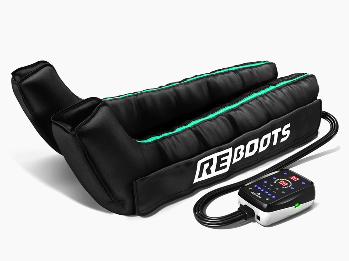 Reboots One kann mit Reboots Boots oder Pants verwendet werden, die jeweils aus 8 Luftkammern bestehen, die eine besonders gleitende Druckwelle erzeugen und so die Massagequalität steigern. Die Kammern bauen einen Druck von bis zu 240 mmHg auf. Das stationäre Reboots One Gerät bietet 6 Massageprogramme für unterschiedliche Massage-Schwerpunkte. Die Reboots Recovery Pants massieren zusätzlich alle wichtigen Muskeln im Hüft- und Po-Bereich.