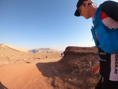 Natürlich gibt es härtere, anstrengendere, archaischere Wüstenläufe. Ultras zumeist. Aber auch erfahrene Ultraläufer attestieren dem Eilat-Desert-Marathon, dass er „the marathon that feels like an ultra“ sei. Denn daran, dass man im lockeren Schotter bergauf und bergab und im Sand der Ebene bei jedem Schritt darauf achten muss, ob der Boden tief oder bockhart wird, dass man kaum weiß, ob er unter dem Schuh wegrutscht oder sich unter dem Staub ein Felsen verbirgt, ändern auch perfekte Markierungen, ein lückenloses Steward-Netz und Laben alle 2,5 Kilometer nichts.