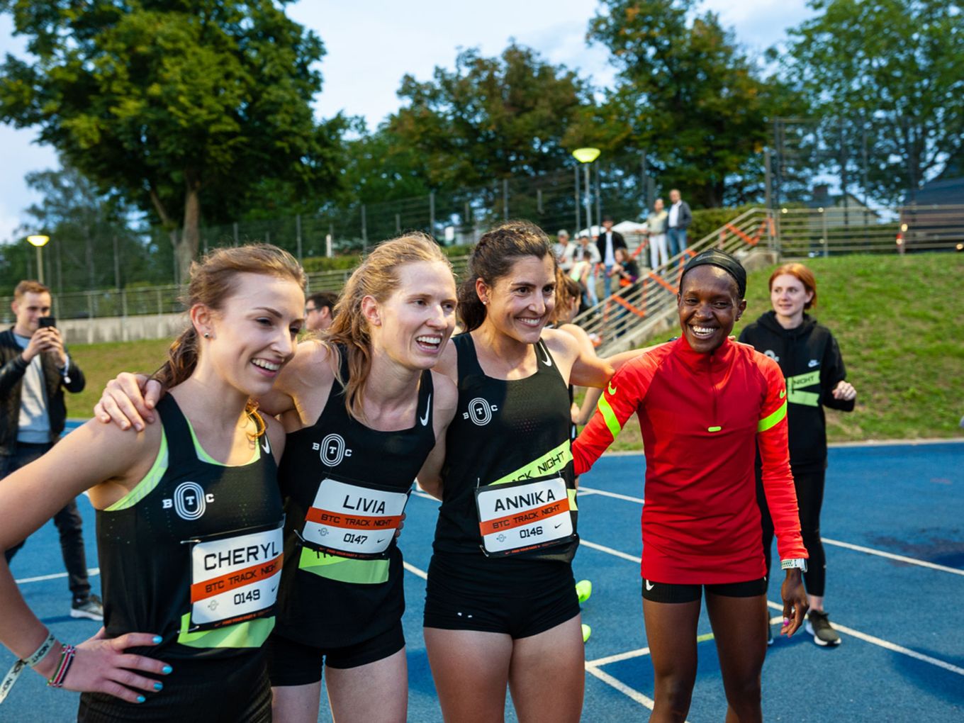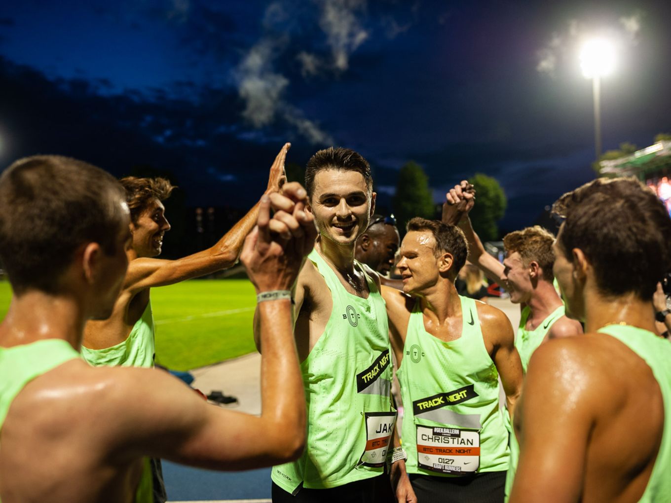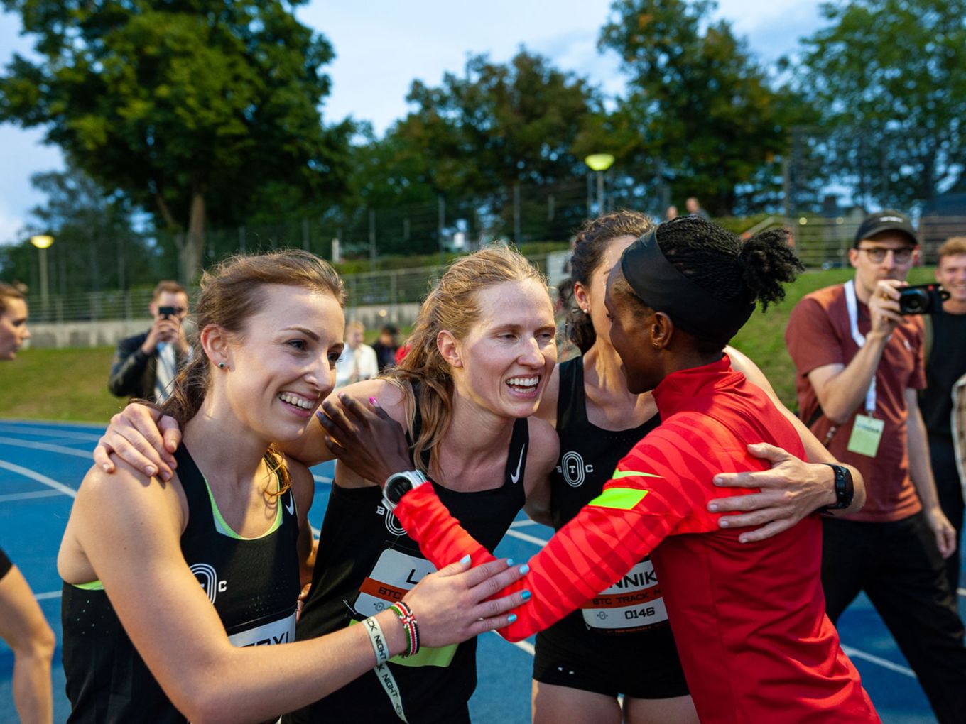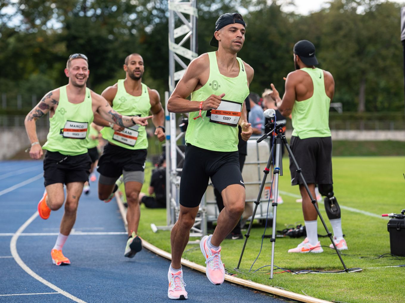Den Laufsport voranbringen und cool machen - das ist auch der Wunsch des Berlin Track Clubs (BTC). Der Verein hat sich Nike ins Boot geholt, um das einmalige Event zu organisieren. „Die Track Night soll auch als Inspiration für andere Races dienen“, sagt Björn Menges, Mitbegründer des BTC, selbstbewusst nach dem Abend. „Eine Vision bei der Gründung vom BTC war es immer, die Lücke zwischen Profi-Athlet:innen und Community-Athlet:innen zu schließen“, so Menges. „Das haben wir heute auf jeden Fall abgeliefert.“