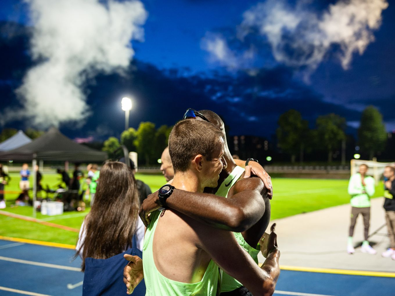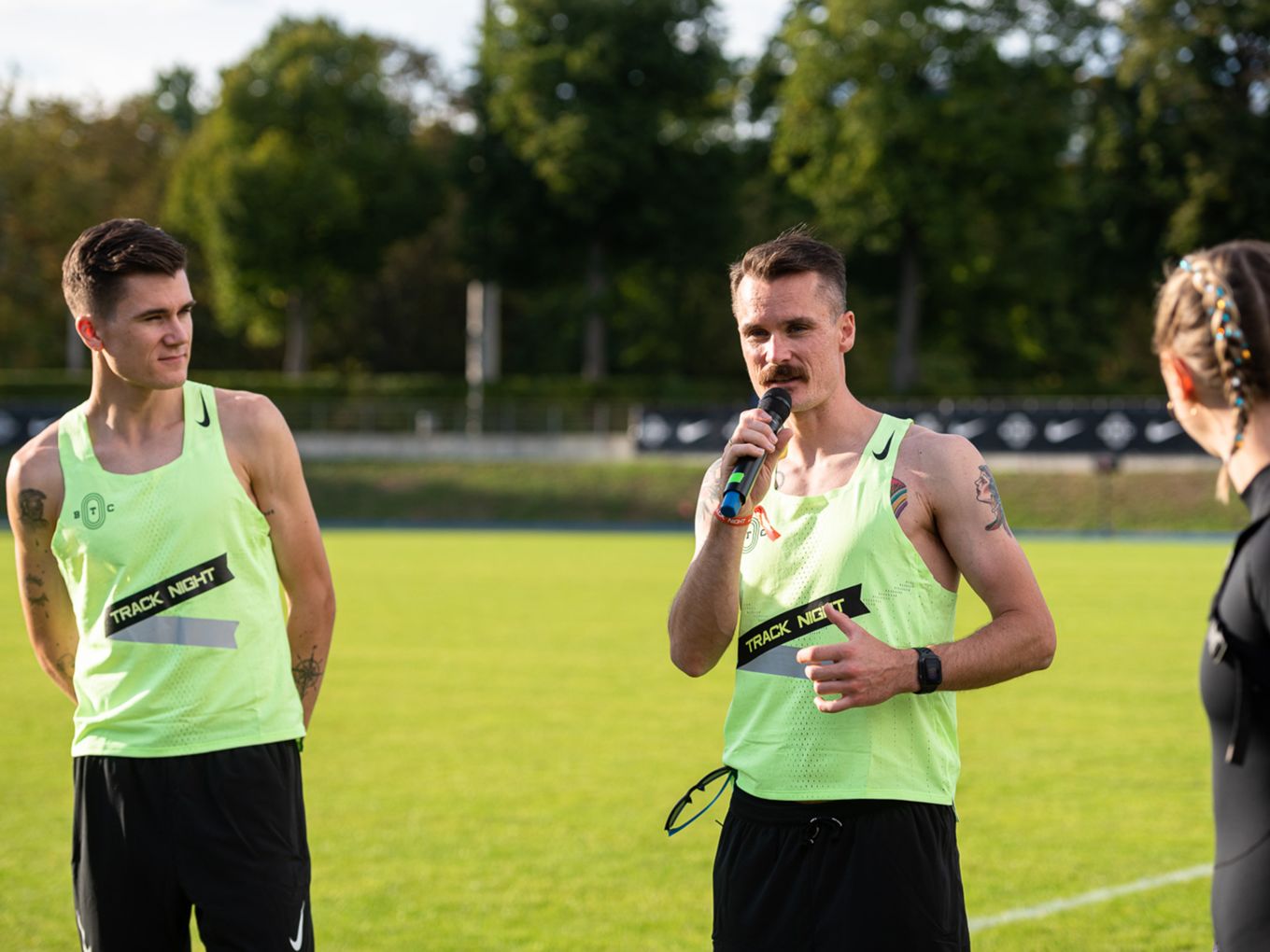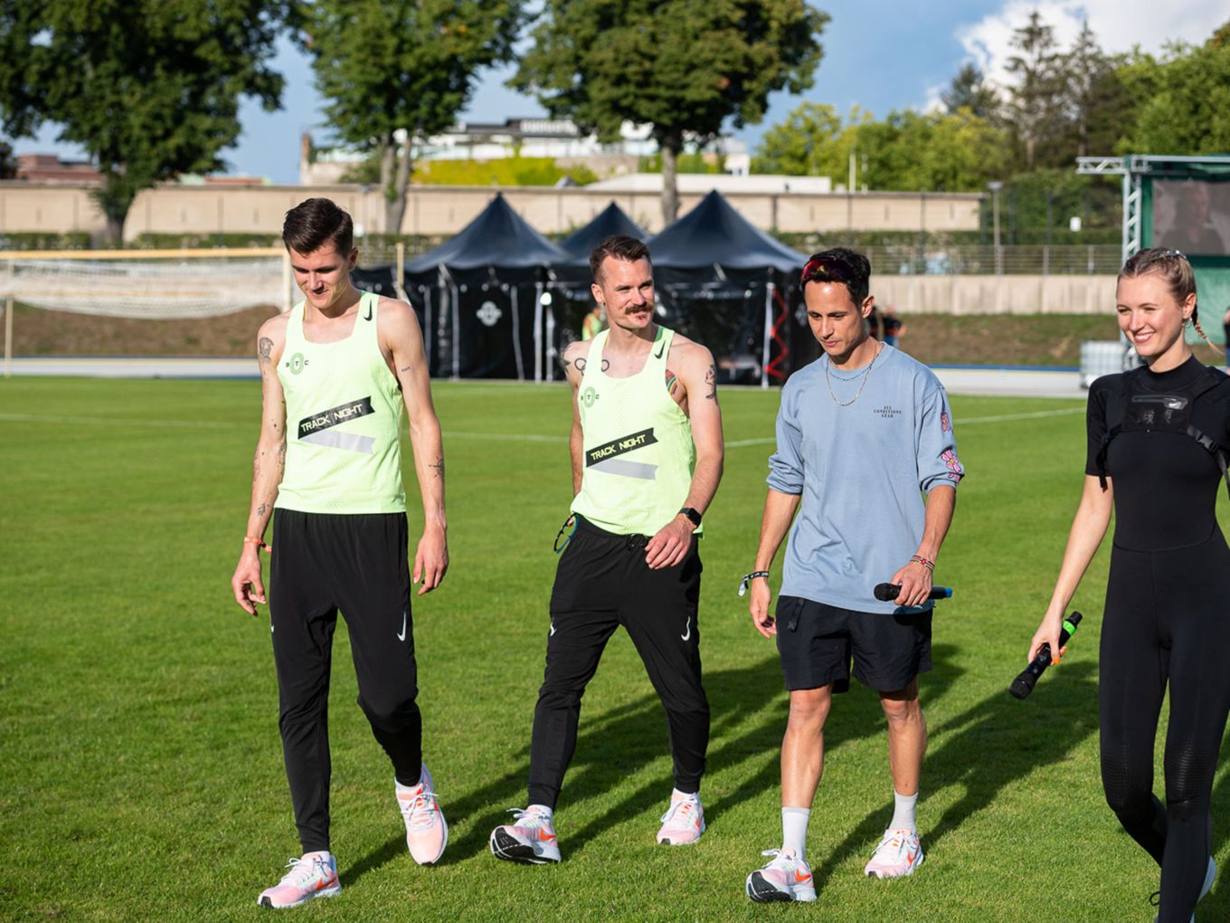 Den Laufsport voranbringen und cool machen - das ist auch der Wunsch des Berlin Track Clubs (BTC). Der Verein hat sich Nike ins Boot geholt, um das einmalige Event zu organisieren. „Die Track Night soll auch als Inspiration für andere Races dienen“, sagt Björn Menges, Mitbegründer des BTC, selbstbewusst nach dem Abend. „Eine Vision bei der Gründung vom BTC war es immer, die Lücke zwischen Profi-Athlet:innen und Community-Athlet:innen zu schließen“, so Menges. „Das haben wir heute auf jeden Fall abgeliefert.“