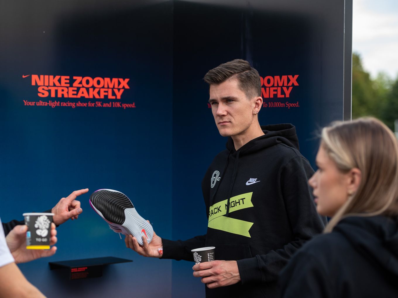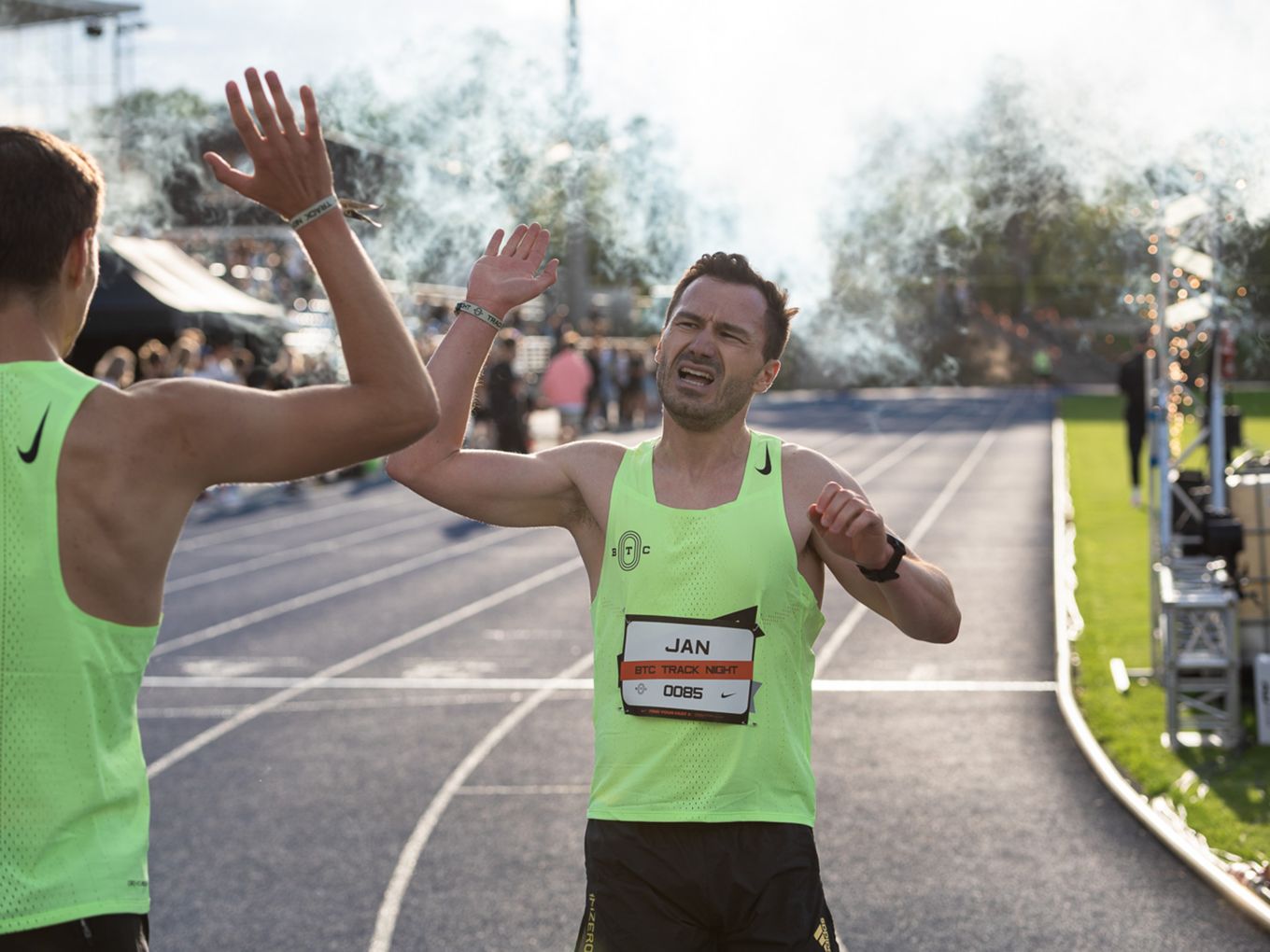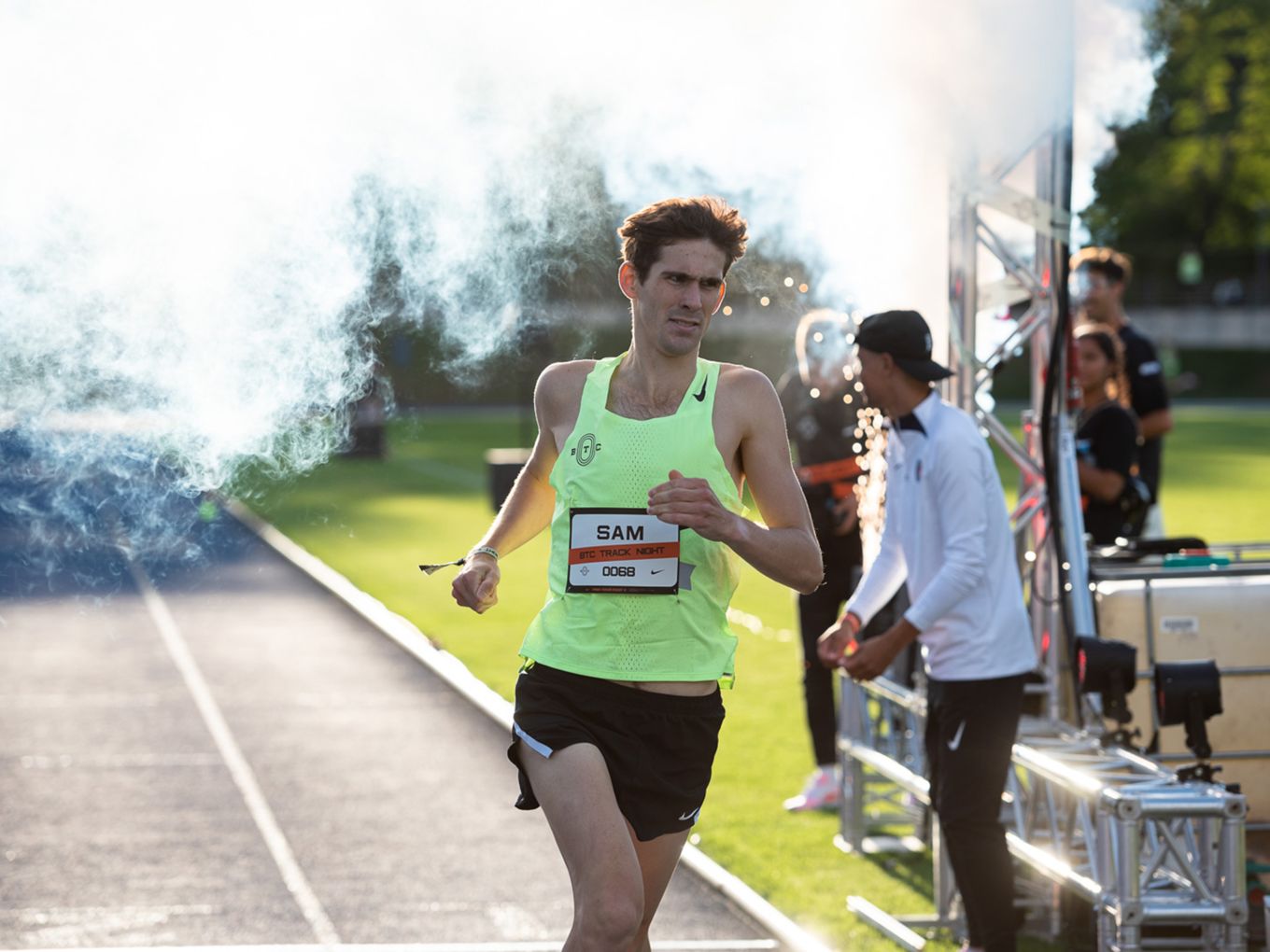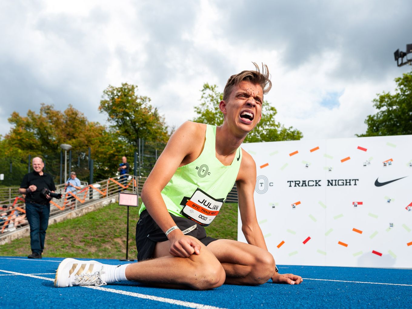 Den Laufsport voranbringen und cool machen - das ist auch der Wunsch des Berlin Track Clubs (BTC). Der Verein hat sich Nike ins Boot geholt, um das einmalige Event zu organisieren. „Die Track Night soll auch als Inspiration für andere Races dienen“, sagt Björn Menges, Mitbegründer des BTC, selbstbewusst nach dem Abend. „Eine Vision bei der Gründung vom BTC war es immer, die Lücke zwischen Profi-Athlet:innen und Community-Athlet:innen zu schließen“, so Menges. „Das haben wir heute auf jeden Fall abgeliefert.“