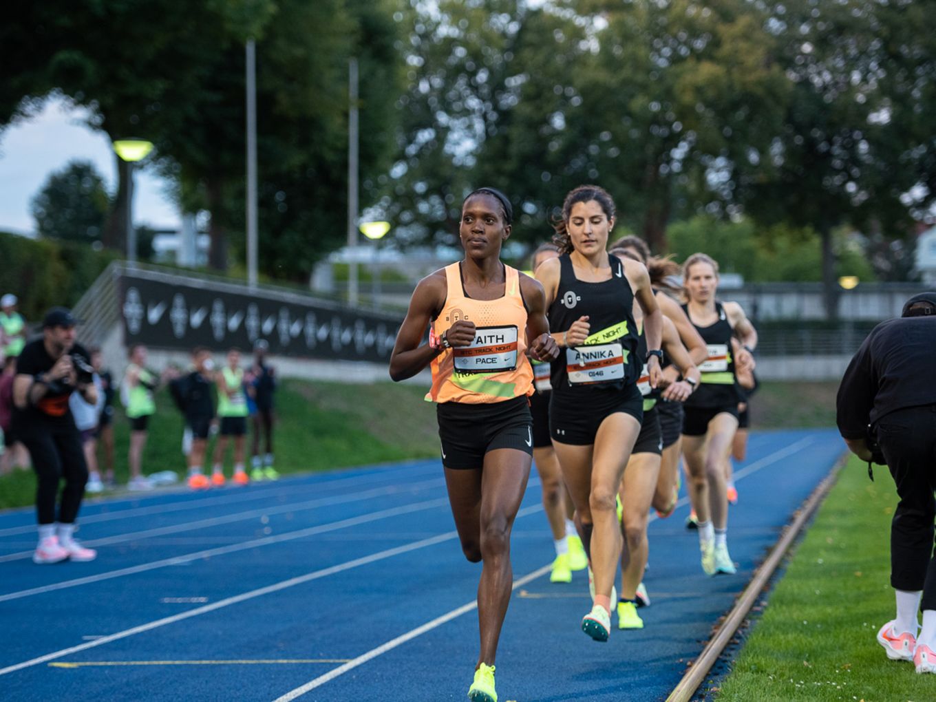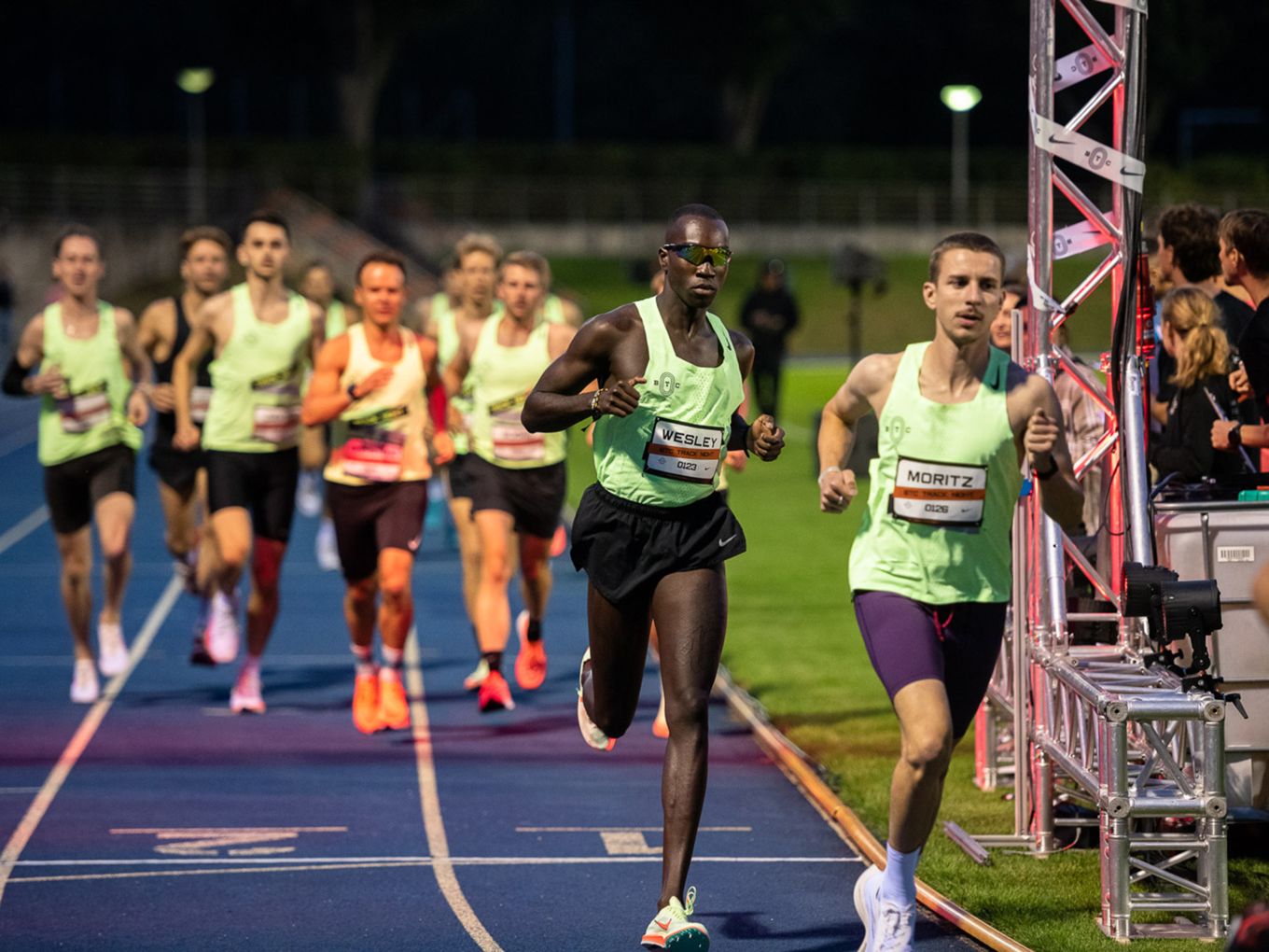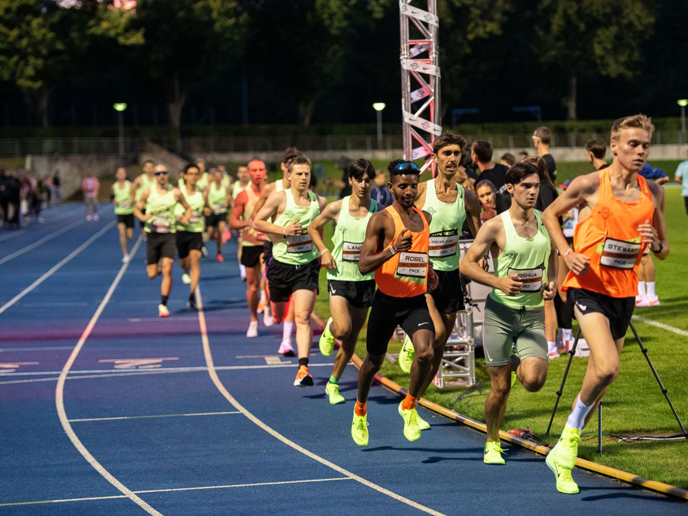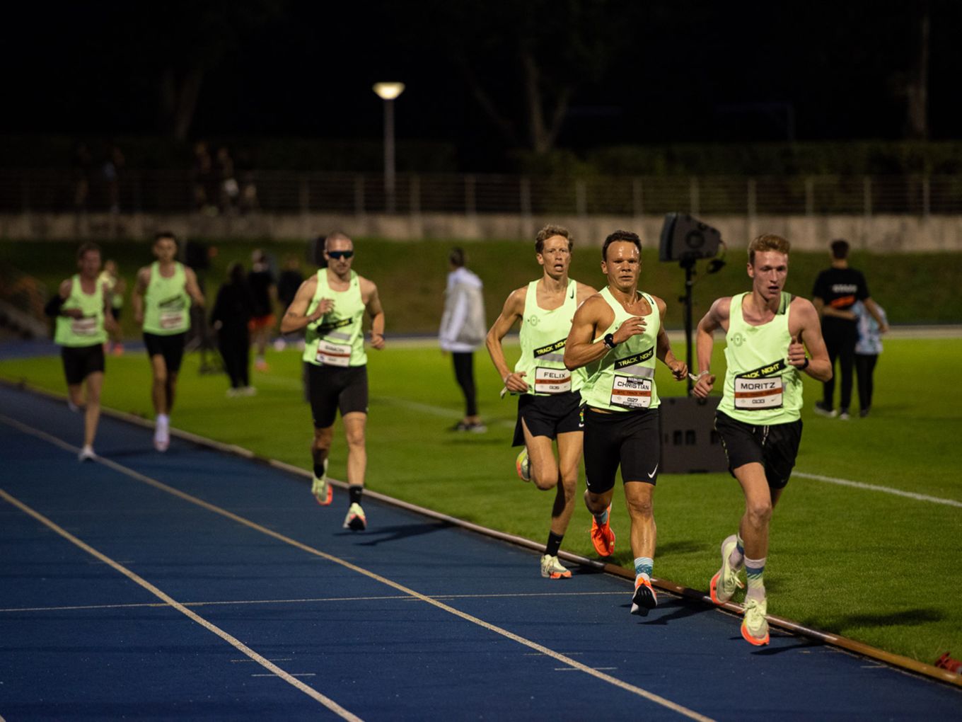 Aufruf im Callroom, prominente Pacer, Zeitmessung und Einlauf der Schnellsten durchs Zielband inklusive. Als beliebteste Distanz erwiesen sich die 800 Meter: Hier gab es insgesamt sogar drei Männer-Rennen. Auch in den langsameren Läufen im Programm der Track Night engagierten sich Weltklasseathlet:innen als Pacer. Über 800 Meter waren die Lokalmatadorin Caterina Granz aus Berlin (Frauen) und der Norweger Filip Ingebrigtsen (Männer) im Einsatz. Das langsamere Rennen über 5.000 Meter wiederum führte der Australier Stewart McSweyn an.