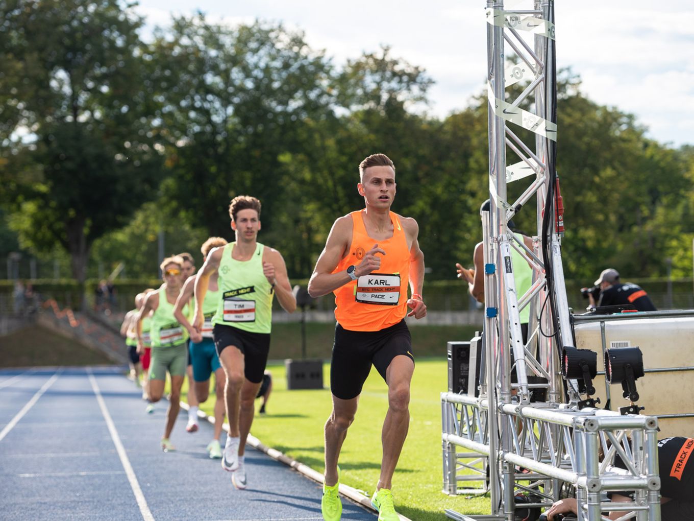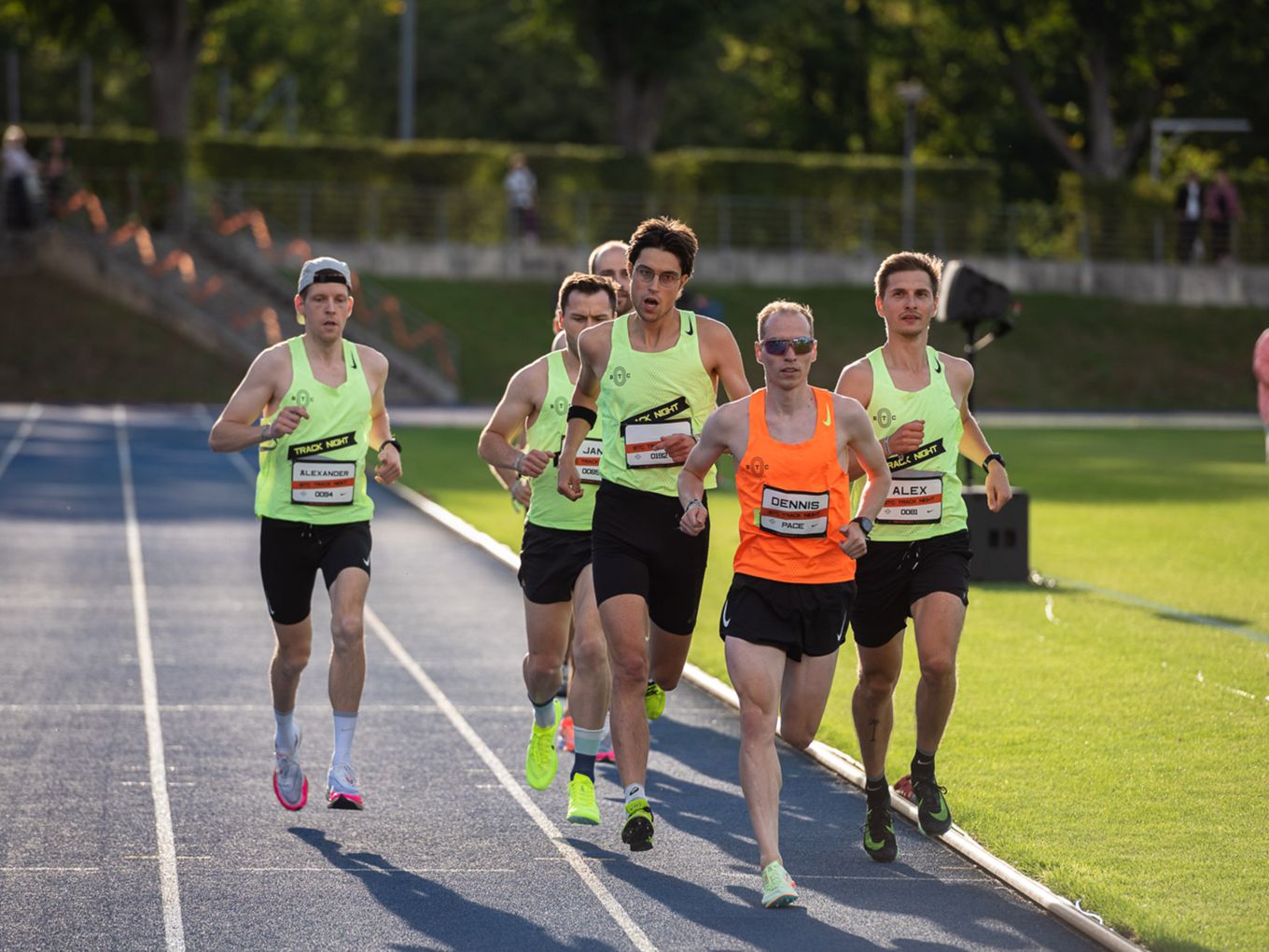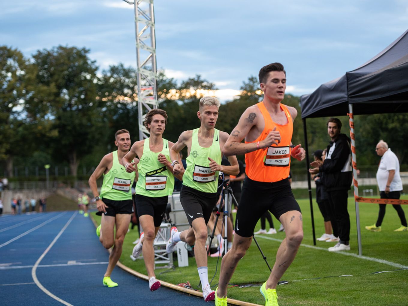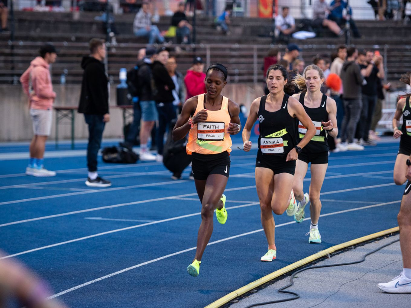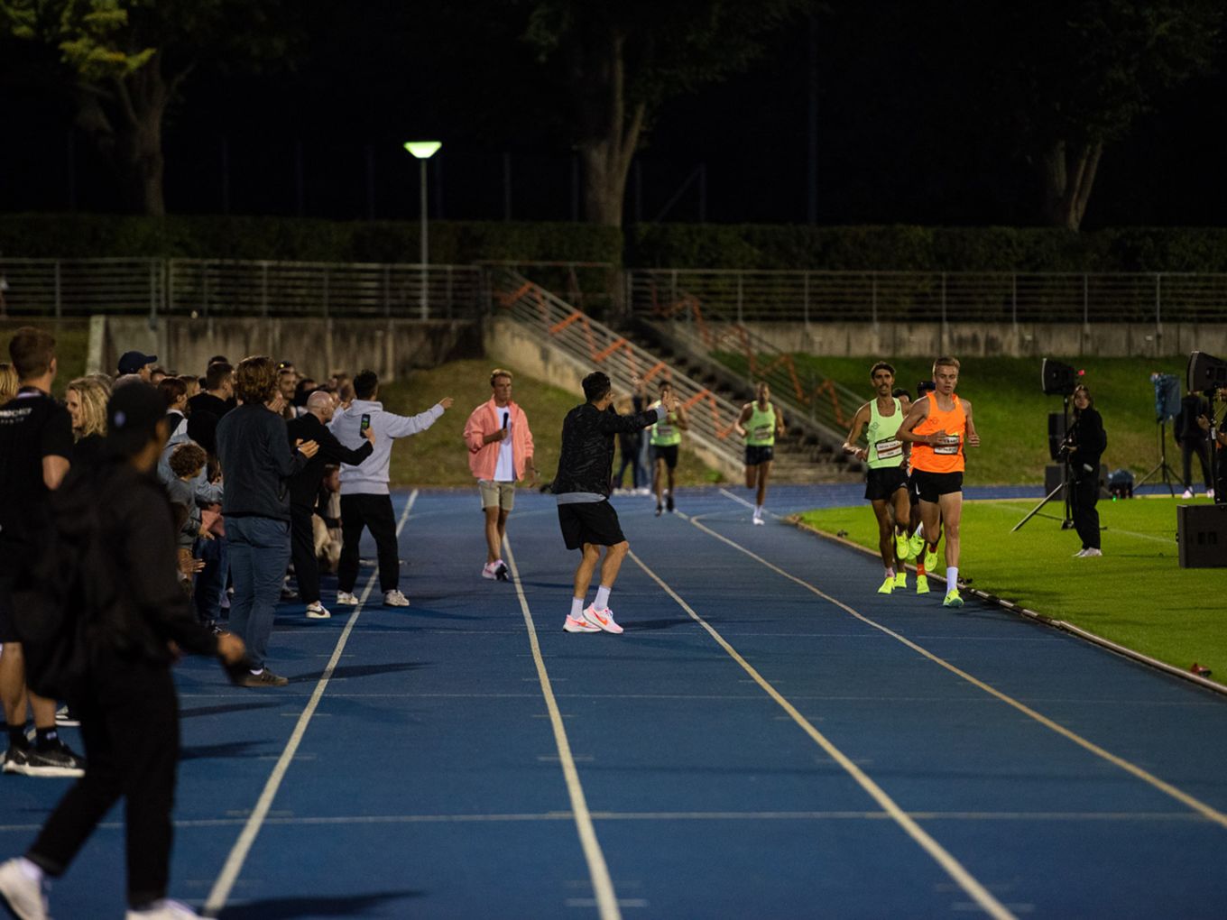 Aufruf im Callroom, prominente Pacer, Zeitmessung und Einlauf der Schnellsten durchs Zielband inklusive. Als beliebteste Distanz erwiesen sich die 800 Meter: Hier gab es insgesamt sogar drei Männer-Rennen. Auch in den langsameren Läufen im Programm der Track Night engagierten sich Weltklasseathlet:innen als Pacer. Über 800 Meter waren die Lokalmatadorin Caterina Granz aus Berlin (Frauen) und der Norweger Filip Ingebrigtsen (Männer) im Einsatz. Das langsamere Rennen über 5.000 Meter wiederum führte der Australier Stewart McSweyn an.
