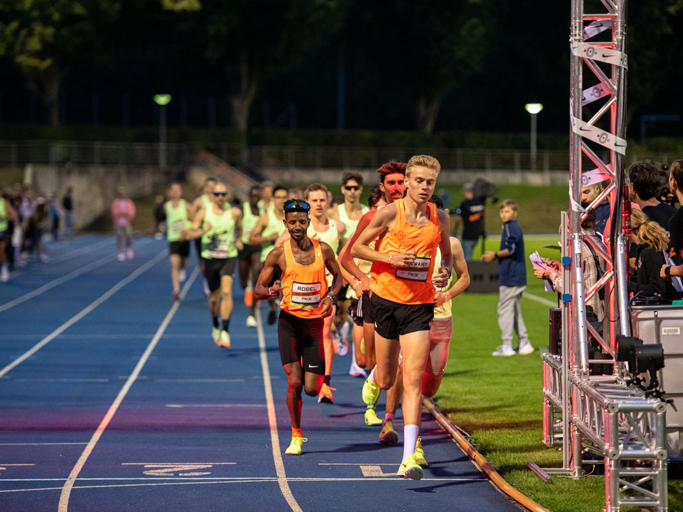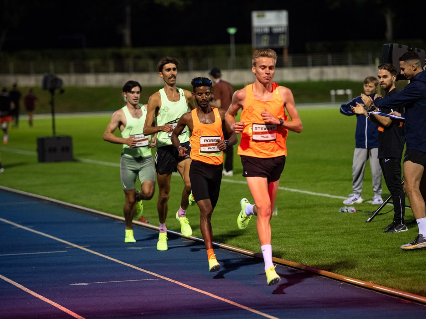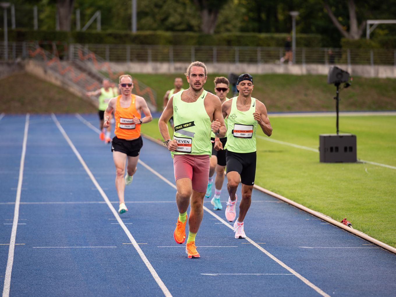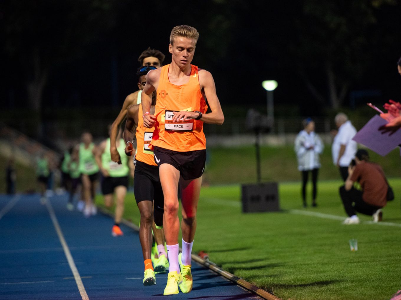 Aufruf im Callroom, prominente Pacer, Zeitmessung und Einlauf der Schnellsten durchs Zielband inklusive. Als beliebteste Distanz erwiesen sich die 800 Meter: Hier gab es insgesamt sogar drei Männer-Rennen. Auch in den langsameren Läufen im Programm der Track Night engagierten sich Weltklasseathlet:innen als Pacer. Über 800 Meter waren die Lokalmatadorin Caterina Granz aus Berlin (Frauen) und der Norweger Filip Ingebrigtsen (Männer) im Einsatz. Das langsamere Rennen über 5.000 Meter wiederum führte der Australier Stewart McSweyn an.