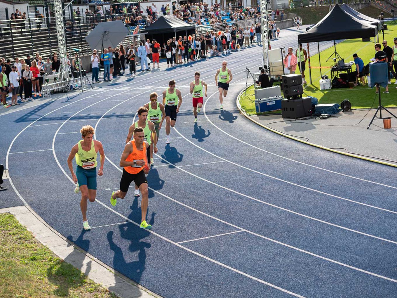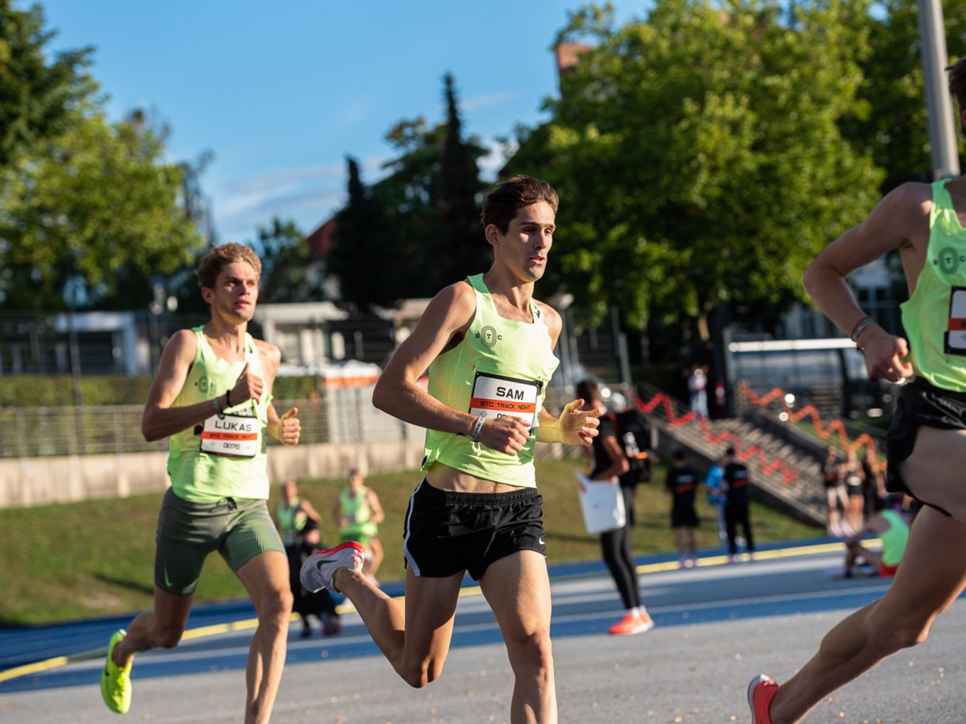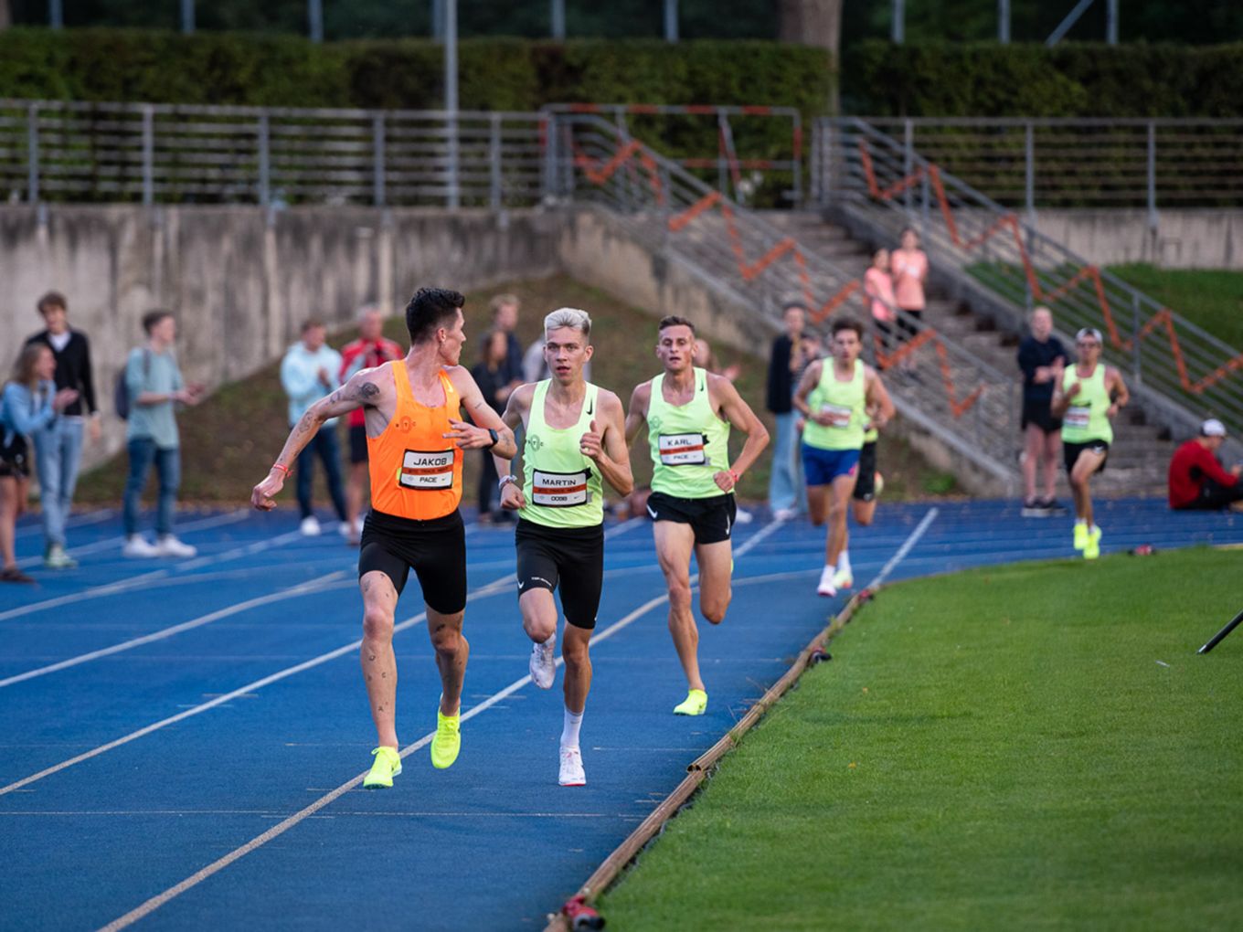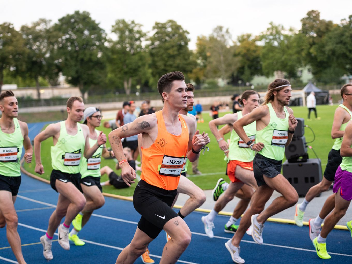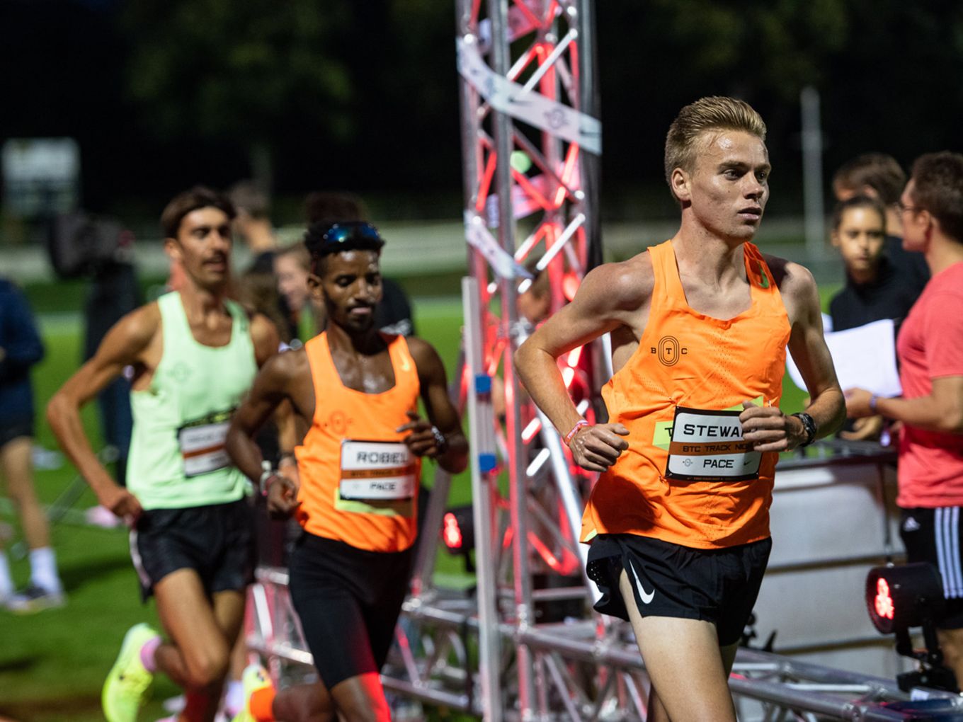 Aufruf im Callroom, prominente Pacer, Zeitmessung und Einlauf der Schnellsten durchs Zielband inklusive. Als beliebteste Distanz erwiesen sich die 800 Meter: Hier gab es insgesamt sogar drei Männer-Rennen. Auch in den langsameren Läufen im Programm der Track Night engagierten sich Weltklasseathlet:innen als Pacer. Über 800 Meter waren die Lokalmatadorin Caterina Granz aus Berlin (Frauen) und der Norweger Filip Ingebrigtsen (Männer) im Einsatz. Das langsamere Rennen über 5.000 Meter wiederum führte der Australier Stewart McSweyn an.