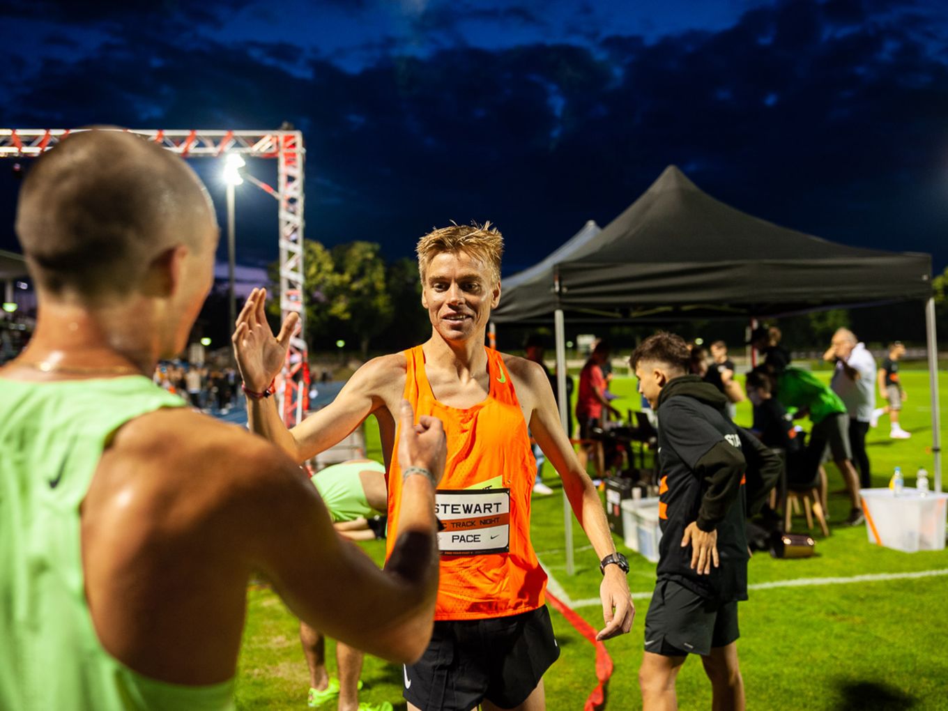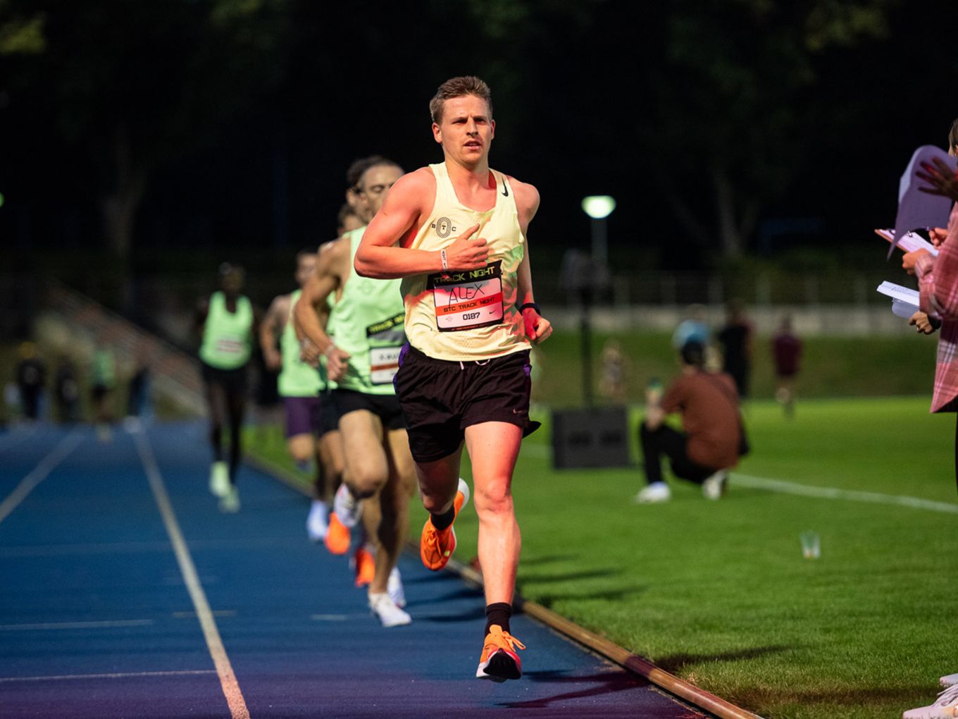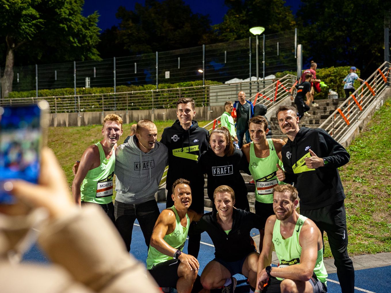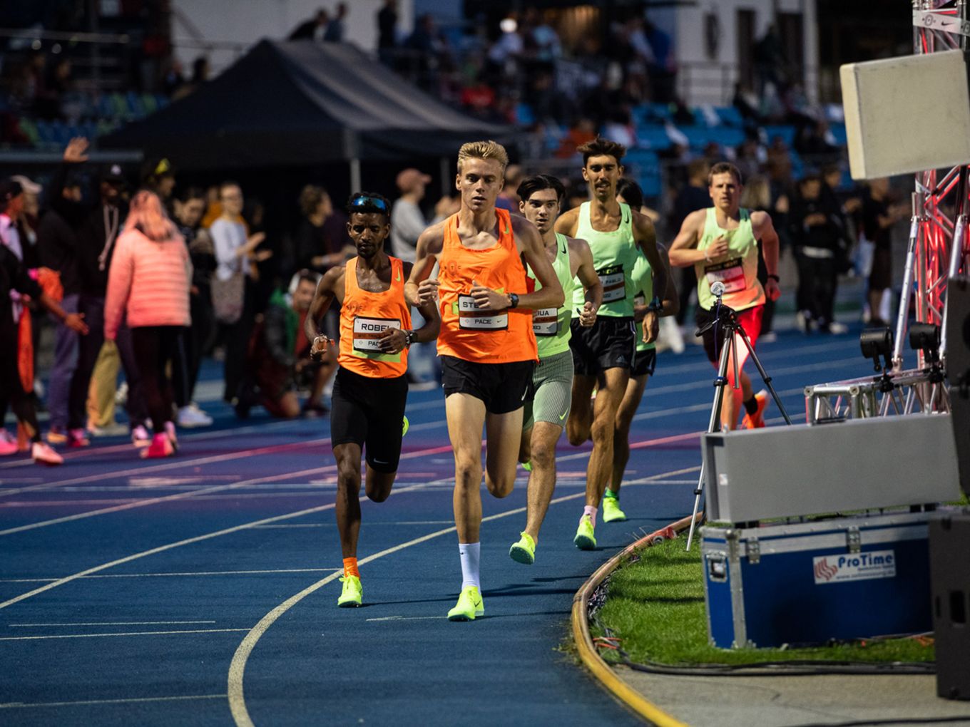 Aufruf im Callroom, prominente Pacer, Zeitmessung und Einlauf der Schnellsten durchs Zielband inklusive. Als beliebteste Distanz erwiesen sich die 800 Meter: Hier gab es insgesamt sogar drei Männer-Rennen. Auch in den langsameren Läufen im Programm der Track Night engagierten sich Weltklasseathlet:innen als Pacer. Über 800 Meter waren die Lokalmatadorin Caterina Granz aus Berlin (Frauen) und der Norweger Filip Ingebrigtsen (Männer) im Einsatz. Das langsamere Rennen über 5.000 Meter wiederum führte der Australier Stewart McSweyn an.