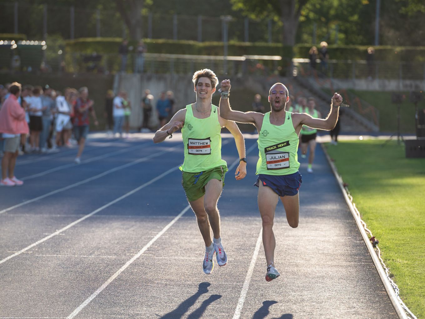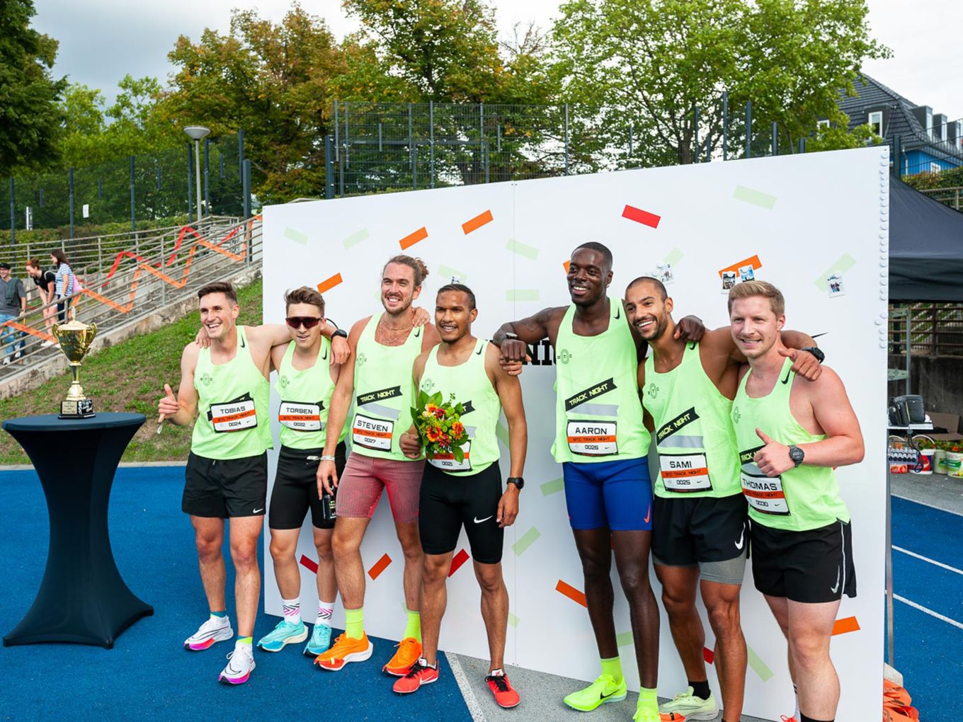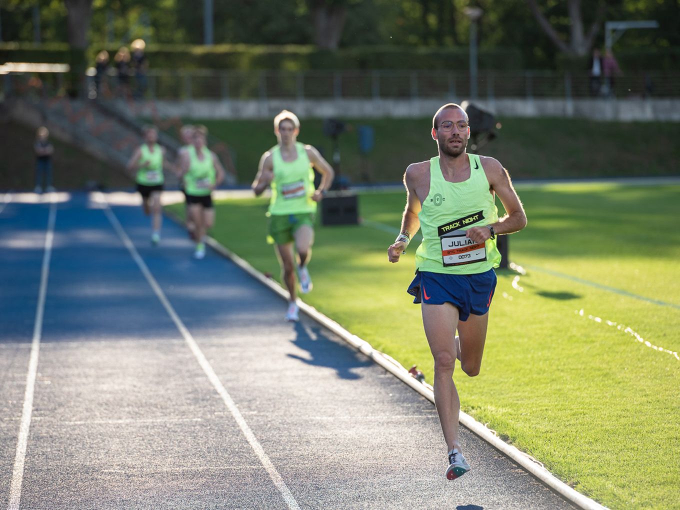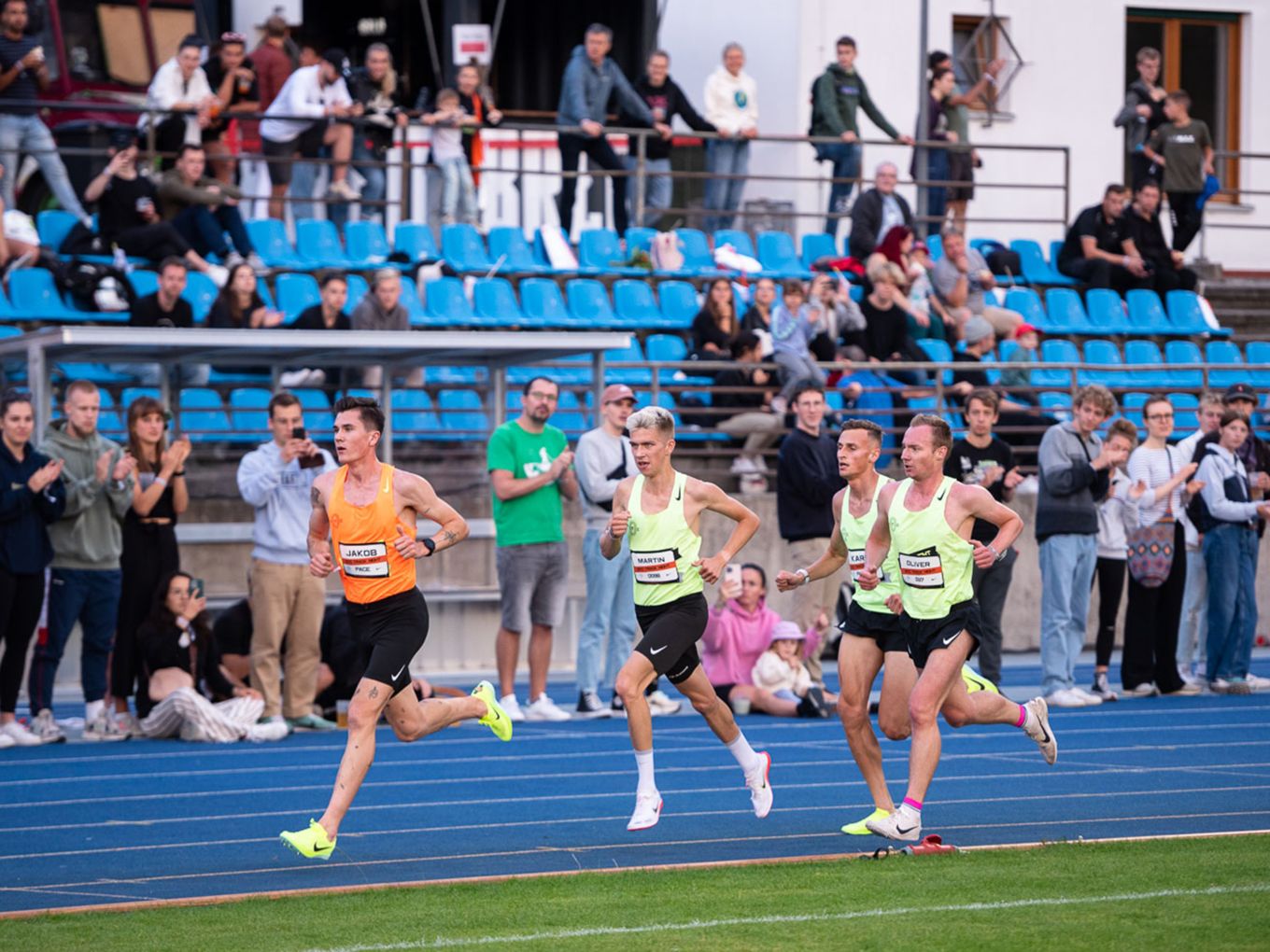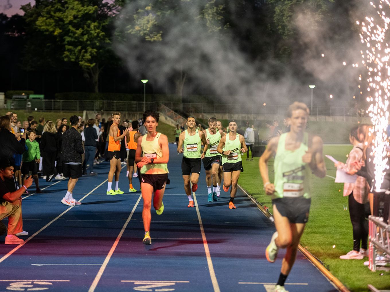 Aufruf im Callroom, prominente Pacer, Zeitmessung und Einlauf der Schnellsten durchs Zielband inklusive. Als beliebteste Distanz erwiesen sich die 800 Meter: Hier gab es insgesamt sogar drei Männer-Rennen. Auch in den langsameren Läufen im Programm der Track Night engagierten sich Weltklasseathlet:innen als Pacer. Über 800 Meter waren die Lokalmatadorin Caterina Granz aus Berlin (Frauen) und der Norweger Filip Ingebrigtsen (Männer) im Einsatz. Das langsamere Rennen über 5.000 Meter wiederum führte der Australier Stewart McSweyn an.