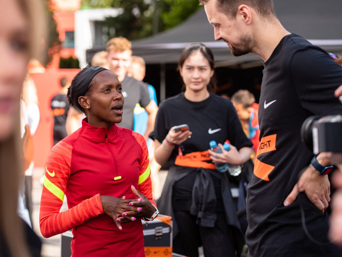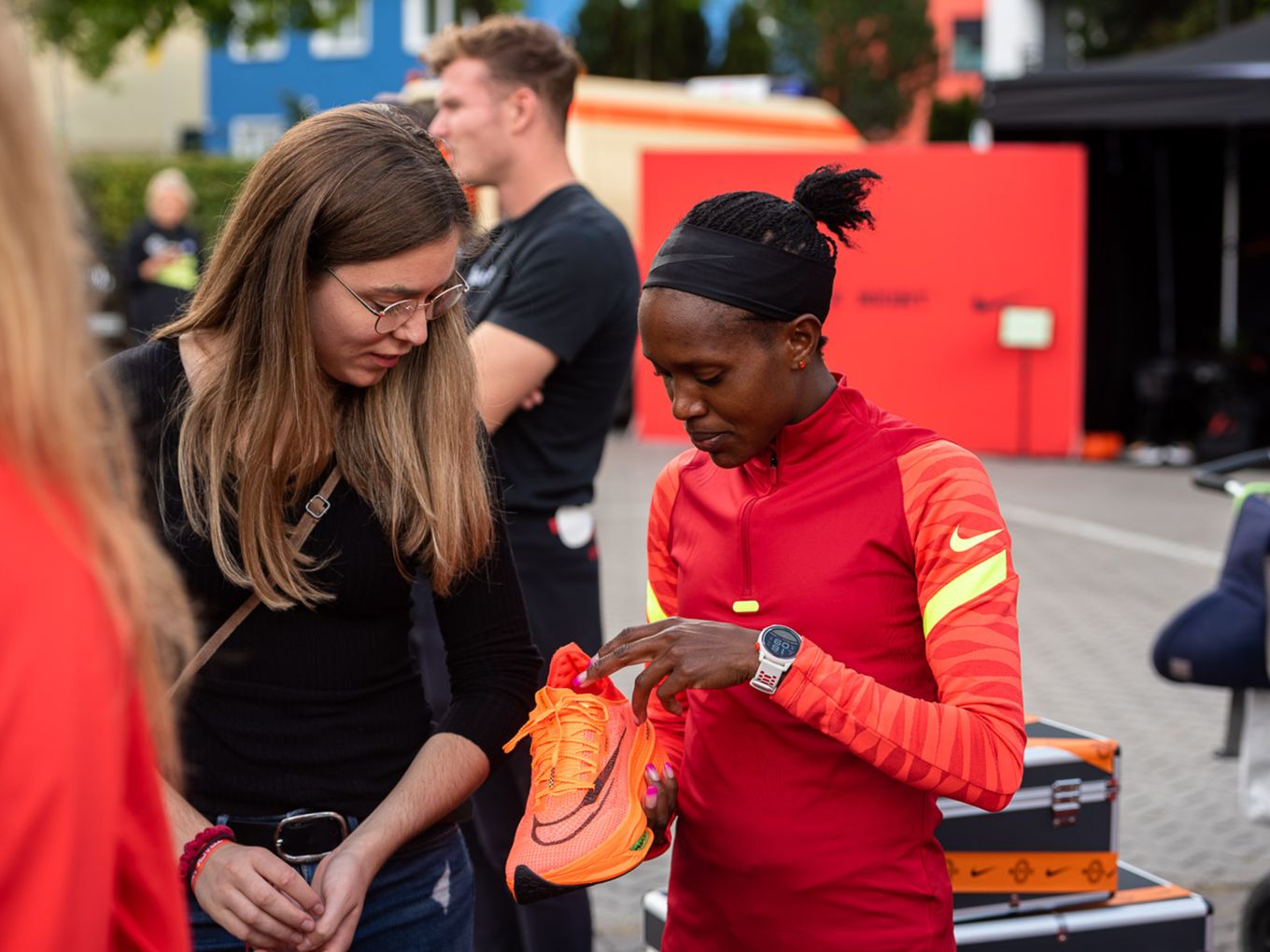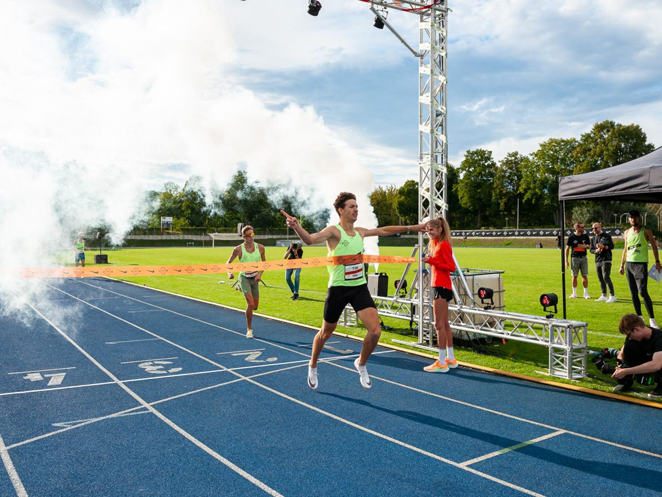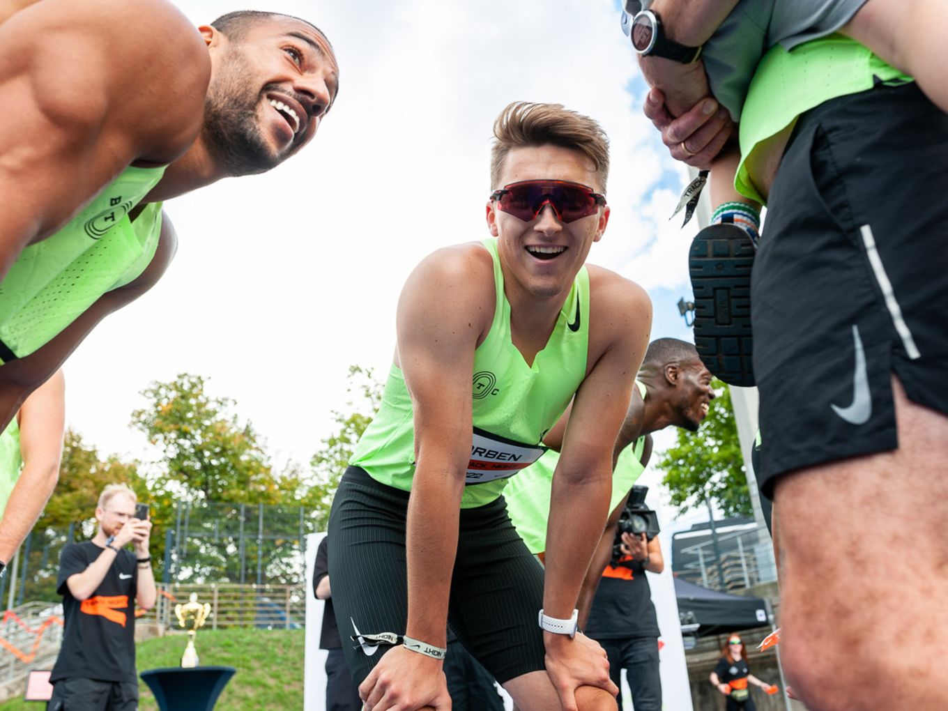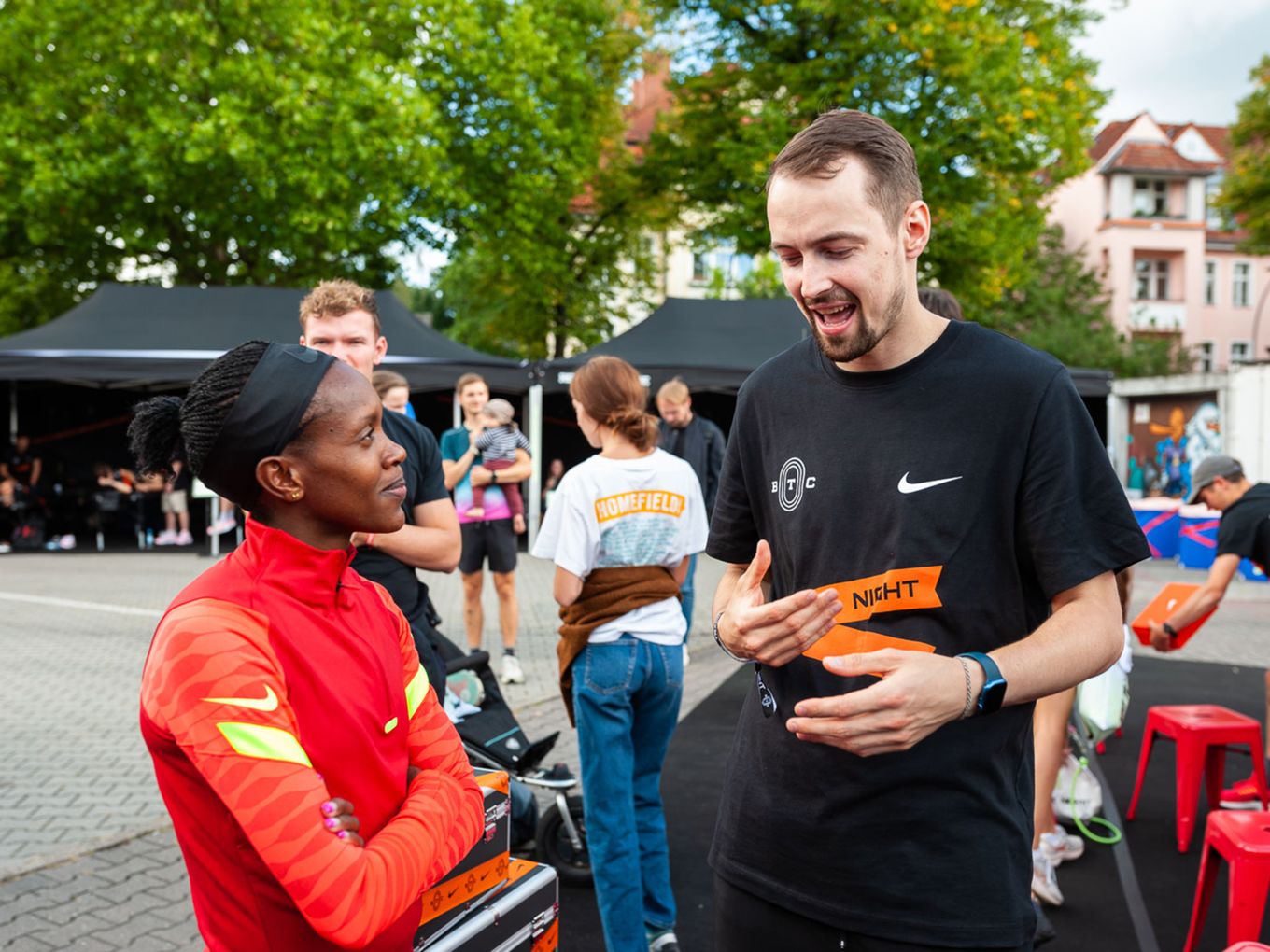 Fast alle Läufe hatten sehr prominente Tempomacher. Ob die frisch gebackene Weltmeisterin über 1.500 Meter, Faith Kipyegon (Kenia) oder Jakob Ingebrigtsen (Norwegen), seinerseits Olympiasieger über 1.500 Meter und Weltmeister über 5.000 Meter: Zahlreiche Nike-Profis waren nach Berlin gekommen, um am Ende ihrer Saison für die nicht ganz so schnellen Läuferinnen und Läufer einzuspringen - und diese zu deren persönlichen Höchstleistungen zu pacen. Vor dem Start und im Ziel gab es für die Starter:innen die Möglichkeit, mit der angereisten Lauf-Prominenz ins Gespräch zu kommen und viele Selfies zu machen.