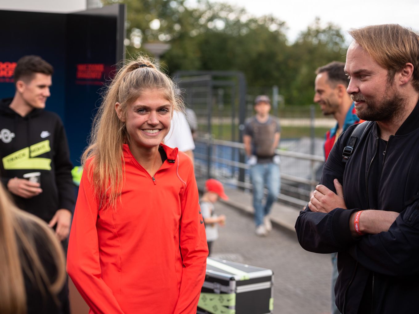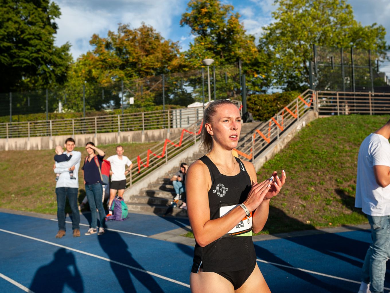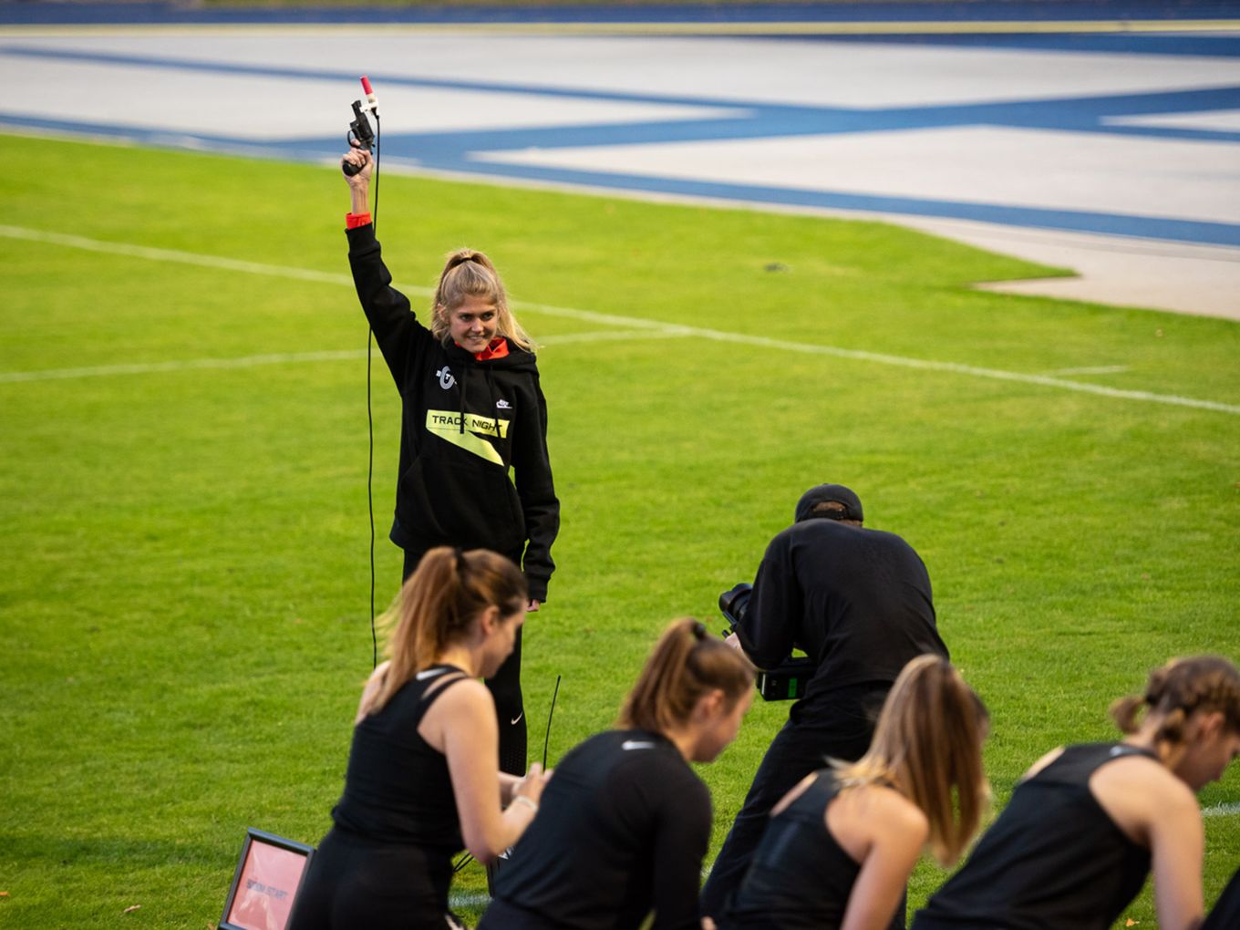 Die deutsche 5.000-Meter-Europameisterin Konstanze Klosterhalfen griff zwar auf der Bahn nicht ins Geschehen ein, dafür aber zur Startpistole. Und war am Rande der Rennen natürlich eine begehrte Gesprächspartnerin, die für alle Selfie-Anfragen und Tipps zum Wettkampf zur Verfügung stand.