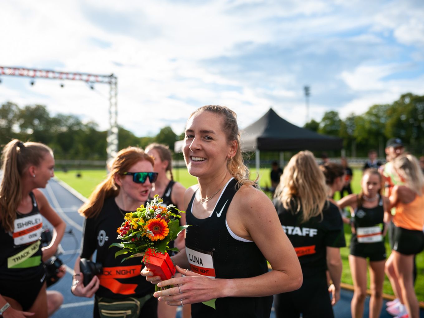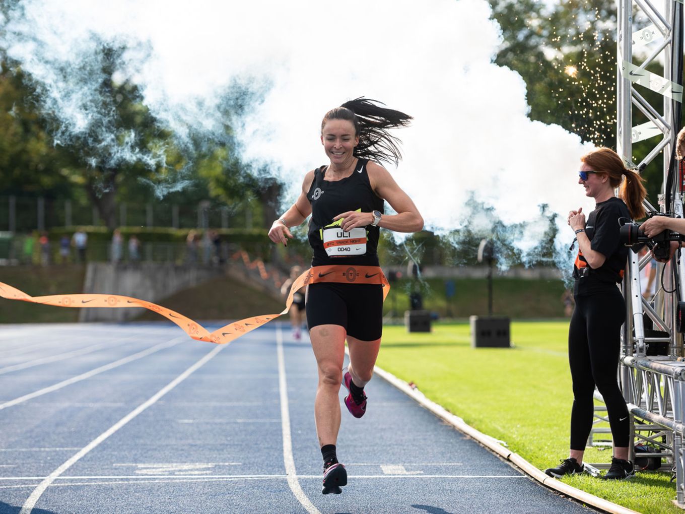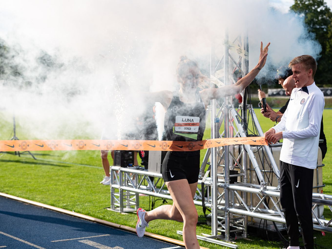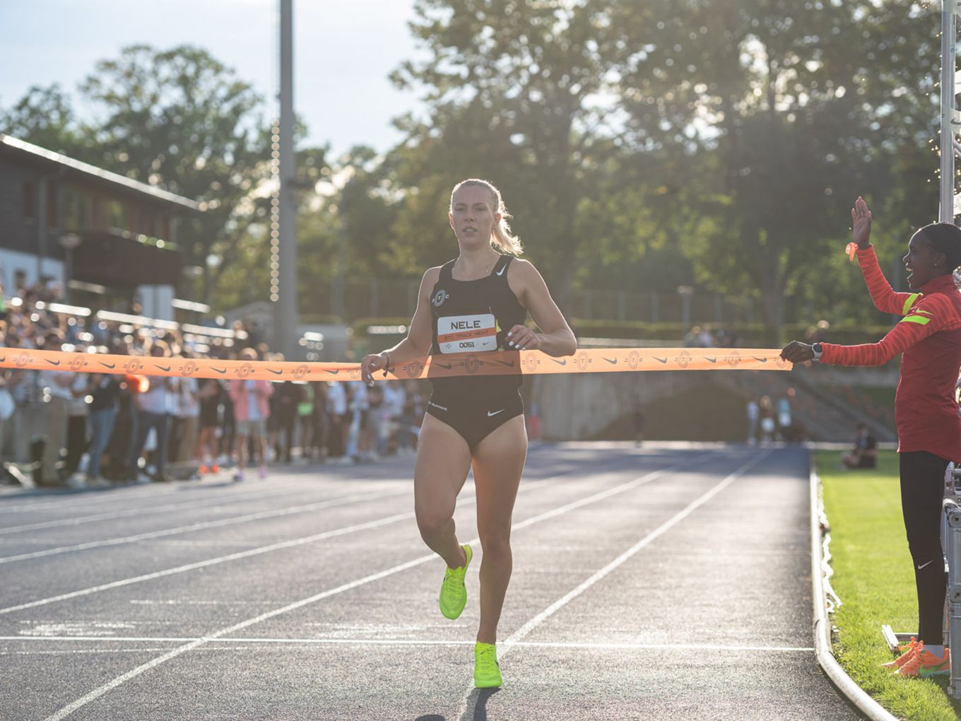 Die deutsche 5.000-Meter-Europameisterin Konstanze Klosterhalfen griff zwar auf der Bahn nicht ins Geschehen ein, dafür aber zur Startpistole. Und war am Rande der Rennen natürlich eine begehrte Gesprächspartnerin, die für alle Selfie-Anfragen und Tipps zum Wettkampf zur Verfügung stand.