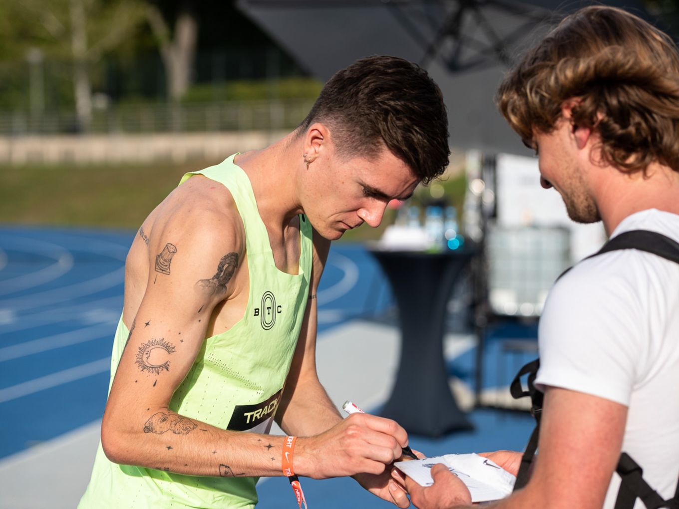 Die Berlin Track Night versammelte am 10. September 2022 unter dem Motto „Festival of Fast“ internationale Leichtathletik-Stars und lokale Amateursportler:innen auf der blauen Bahn im Stadion Berlin-Lichterfelde. Der Ansatz: die Verknüpfung aus schnellen Läufen, viel Spaß, einem freshen DJ-Line-Up, gutem Essen und Tipps von der absoluten Weltspitze.