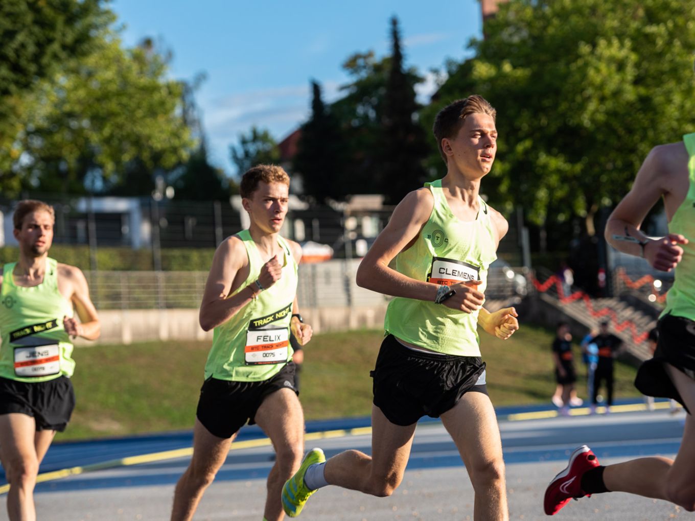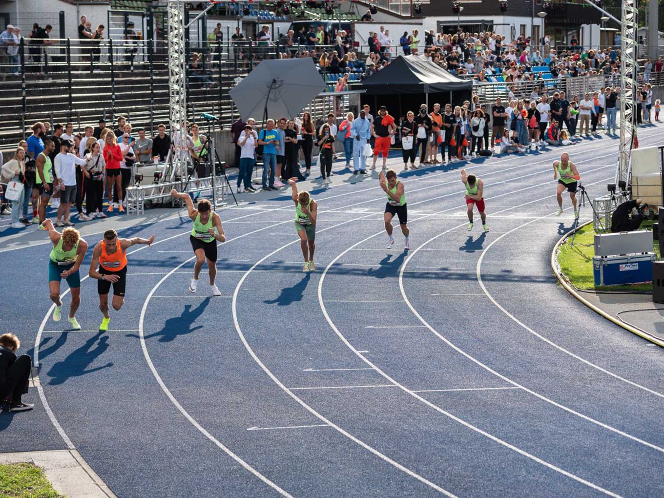 Bei der Berlin Track Night standen nicht nur die schnellen Rennen im Fokus. Bei den langsameren Läufen mit hippen Namen wie „Beyond Fast Berlin“ oder “Crown of Berlin” hatten alle Athlet:innen eine Chance, sich auf der Bahn auszuprobieren und Stadionluft zu schnuppern. Dabei mussten sie weder Spikes tragen noch eine bestimmte Bestzeit vorweisen, um starten zu dürfen. Behandelt wurden die Starter:innen genauso professionell wie die schnelleren Läufer:innen.