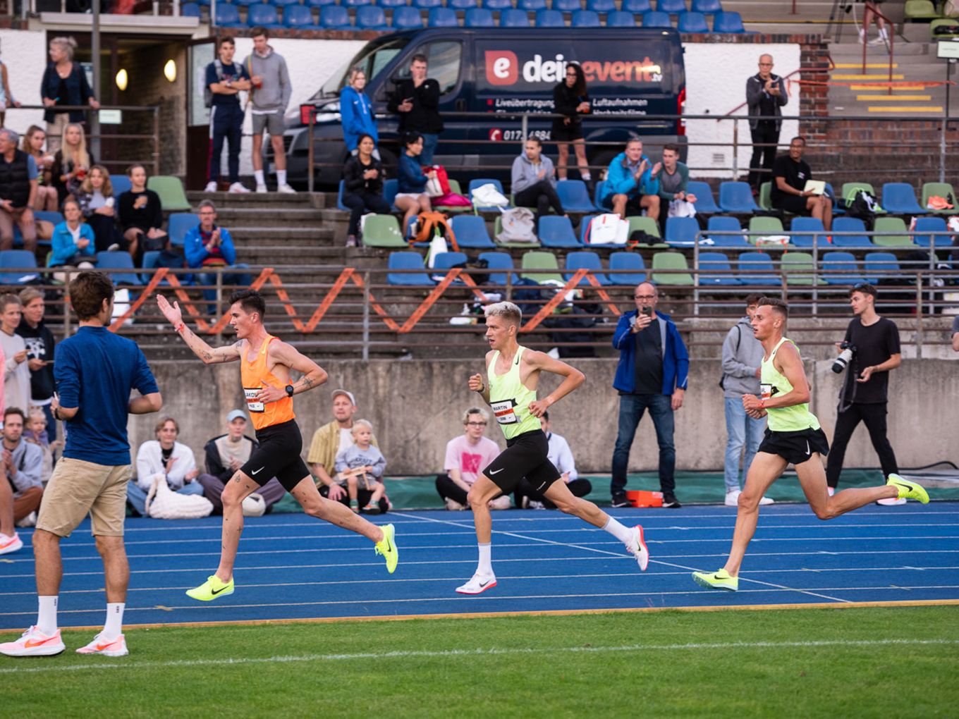 Der Sieg über 5.000 Meter ging schließlich an Livia Eggler (Team Berlin Triathlon) in 17:02,44 Minuten. Die Führungsarbeit im 5.000-Meter-Lauf der Männer übernahm der aktuelle Europameister über diese Distanz - Jakob Ingebrigsten aus Norwegen. 4.900 Meter lang rannte er an der Spitze - und verhalf damit dem Tschechen Martin Zajic als Sieger des Rennens zu einer neuen persönlichen Bestzeit von 14:04,75 Minuten.