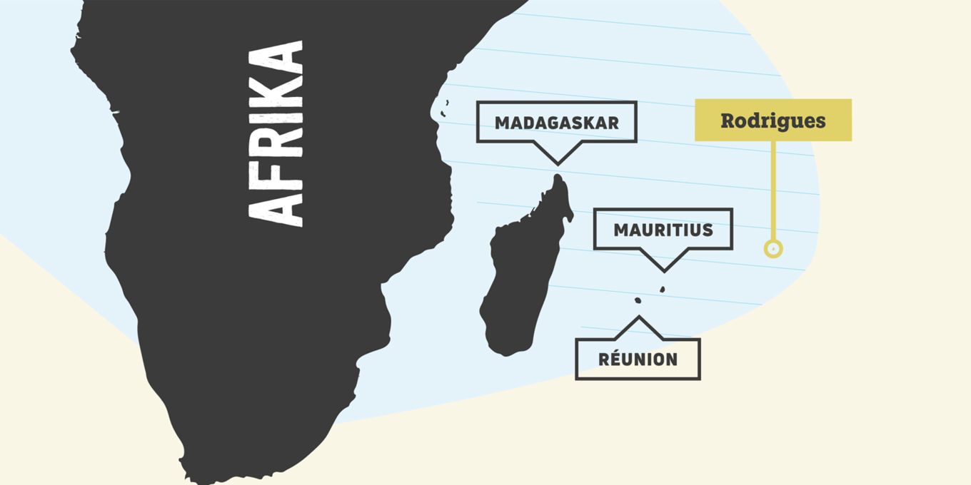 Rund 1600 Kilometer östlich von der Küste Madagaskars entfernt liegt Rodrigues wahrhaft abgelegen, mitten im Indischen Ozean. Wer hierher will, muss zuerst auf die rund 600 Kilometer entfernte Insel Mauritius fliegen. Von dort sind es noch einmal anderthalb Flugstunden. Knapp 41.000 Einwohner überwiegend afrikanischer Herkunft leben auf dem Eiland. Und ein wenig wirkt es so, als sei die Zeit dort irgendwann im 19. Jahrhundert stehen geblieben. Gemächlich geht das Leben seinen Gang, es gibt kaum Verkehr, überall laufen Ziegen, Rinder und Schweine frei herum.