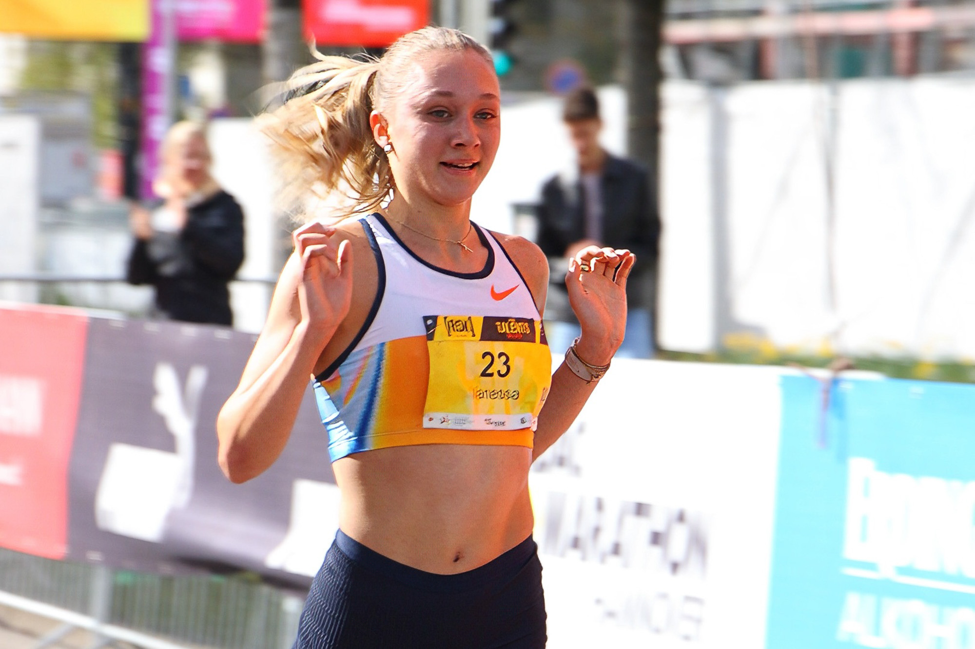 In Hannover unterstrich die Läuferin von Eintracht Frankfurt ihre große Klasse über 5 Kilometer. Mit 16:40 Minuten siegte sie mit großen Vorsprung in der U20 – nur Vanessa Mikitenko war schneller als Brzoska.