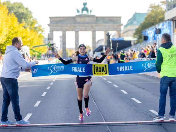 Das R5K-Finale wird am Vortag des BMW Berlin-Marathon um 11:50 Uhr am Potsdamer Platz gestartet. Der Kurs führt die unter 23 Jahre alten Läufer*innen über die letzten fünf Kilometer des Original-Marathonkurs durchs Brandenburger Tor bis ins Ziel auf der Straße des 17. Juni. Vor einem Jahr gewann das Frauenrennen Lokalmatadorin Blanka Dörfel (SCC Berlin/Foto), die in diesem Jahr nicht mehr der U23-Klasse angehört.