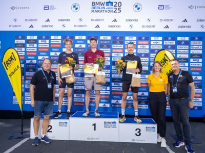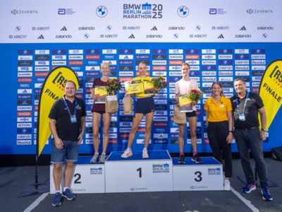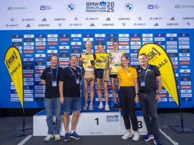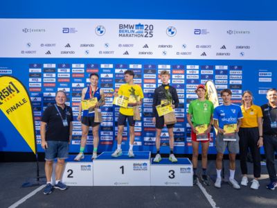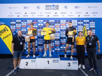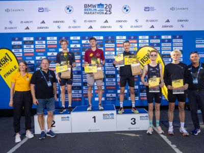Christoph Schrick, Vanessa Mikitenko, Tristan Kaufhold und Carlotta Bülck haben die R5K-Tour 2025 gewonnen. Am Vortag des BMW BERLIN-MARATHONS gab es für sie Preisgelder und Zuschüsse zu Trainingslagern.