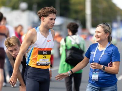„Es lief nicht gut heute“, sagte sie hinterher, hatte aber sofort eine schlüssige Erklärung parat. Sie ist direkt aus dem Trainingslager in Kienbaum angereist, wo sie sich derzeit mit der Triathlon-Nationalmannschaft auf die Weltmeisterschaften vorbereitet, die in Australien stattfinden. Im vergangenen Jahr war sie bereits Zehnte bei der Triathlon-WM, wo die U20 über 750 Meter Schwimmen, 20 Kilometer Radfahren und fünf Kilometer Laufen antritt. Diesen Sommer wurde sie bei den Europameisterschaften Fünfte und jetzt ist sie gespannt, was in Wollongong bei Sydney für sie möglich ist. In Berlin war sie aber noch müde von den hohen Trainingsbelastungen in der Vorbereitung und hofft, in Australien die abschließenden fünf Kilometer deutlich schneller zu laufen. Ihre Zukunft sieht sie auch im Triathlon – noch: „Das Laufen macht mir schon sehr viel Spaß. Und die Stimmung heute war cool. Mal schauen, was sich so ergibt.“