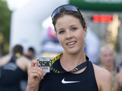 Sie startet am Vortag des BMW Berlin-Marathon mit 57 Sekunden Vorsprung in das abschließende Rennen über fünf Kilometer. Das Finale der R5K-Tour wird wie in den Jahren zuvor auf den letzten fünf Kilometern des original Berliner Marathonkurses zwischen Potsdamer Platz und Brandenburger Tor ausgetragen. Darauf freut sich jetzt Vanessa Mikitenko: „Dass es nach der Off-Season schon so gut läuft, ist super“, sagte sie nach dem Rennen. Die 20-Jährige hatte nach ihrer Silbermedaille über 5000 Meter bei der U23-EM in Norwegen kurz pausiert, ist aber seit kurzem wieder voll im Training. „Ich bin sehr froh, zum ersten Mal in Hamburg gelaufen zu sein. Die Strecke hat Spaß gemacht.“