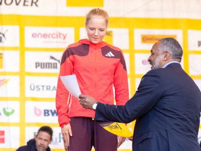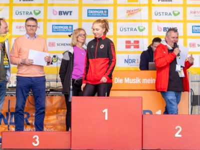 Bei den weiblichen unter 20-Jährigen wurde Carlotta Bülck (LG Erlangen) für ihre weite Anreise belohnt. Die 17 Jahre alte Fränkin ist Nationalkader-Triathletin und hat 2024 den zehnten Platz bei den Weltmeisterschaften der Juniorinnen belegt. Aber die Ausflüge zur Leichtathletik machen ihr Spaß: „Laufen gefällt mir auch beim Triathlon am besten.“ Und sie ist richtig gut darin. 2024 gewann die bei den Deutschen U18-Meisterschaften in Mönchengladbach in 10:03,43 Minuten auf Anhieb Silber über 3000 Meter. Es war erst ihr zweites Rennen über diese Strecke. „Und dann habe ich auf Instagram von den R5K-Rennen erfahren, fand das richtig cool und habe mich für Hannover angemeldet“, erzählte sie lachend, nachdem sie das Rennen in 17:24 Minuten vor Ada Werner (SCC Berlin/17:31 min) gewonnen hatte. Als Dritte in 17:34 Minuten bleibt Selina Planken (Dresdner SC) nach ihrem Heimsieg beim R5K-Auftaktrennen in der Gesamtwertung vorn.