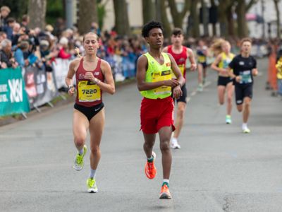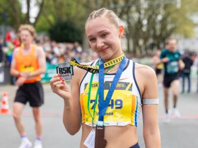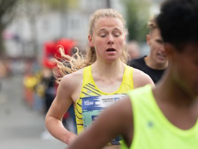 Seine Vereinskollegin Vanessa Mikitenko muss dagegen vor dem Berliner Finale noch einmal beim Barmer Alsterlauf in Hamburg starten, wenn sie ihrem U20-Gesamtsieg von 2024 einen weiteren in der U23 folgen lassen will. Für die 19-Jährige war der Paderborner Osterlauf der Einstieg in die R5K-Tour 2025, bei dem sie in 15:41 Minuten eine ganz starke Leistung zeigte. Schneller ist sie noch nie 5000 Meter gelaufen: Auf der Bahn steht ihre Bestzeit bei 15:55,70 Minuten, auf der Straße verbesserte sie sich um 25 Sekunden gegenüber jenen 16:05 Minuten, die sie 2024 als U20-Siegerin von Paderborn erzielte. „Es lief sehr gut und hat Spaß gemacht“, meinte sie hinterher und fand es „cool, dass so viele Jungs da waren, an die ich mich hängen konnte. Ich bin sehr fit und froh, heute so eine Zeit gelaufen zu sein. Jetzt freue ich mich auf alles was kommt, wenn bald die Bahnsaison losgeht.“ In der sind für die Hallen-DM-Dritte über 1500 Meter die U23-Europameisterschaften das große Ziel, die vom 17. bis 20. Juli im norwegischen Bergen ausgetragen werden. Angesichts dieser Leistung hatten auch die Vierte der Cross-EM in der U23 Pia Schlattmann (16:17 min), Nele Heymann (beide LC Paderborn; 16:33 min) und die Vorjahressiegerin der U23 in der R5K-Tour Carolina Schäfer (TG Schwalbach; 16:34 min) deutlich das Nachsehen.