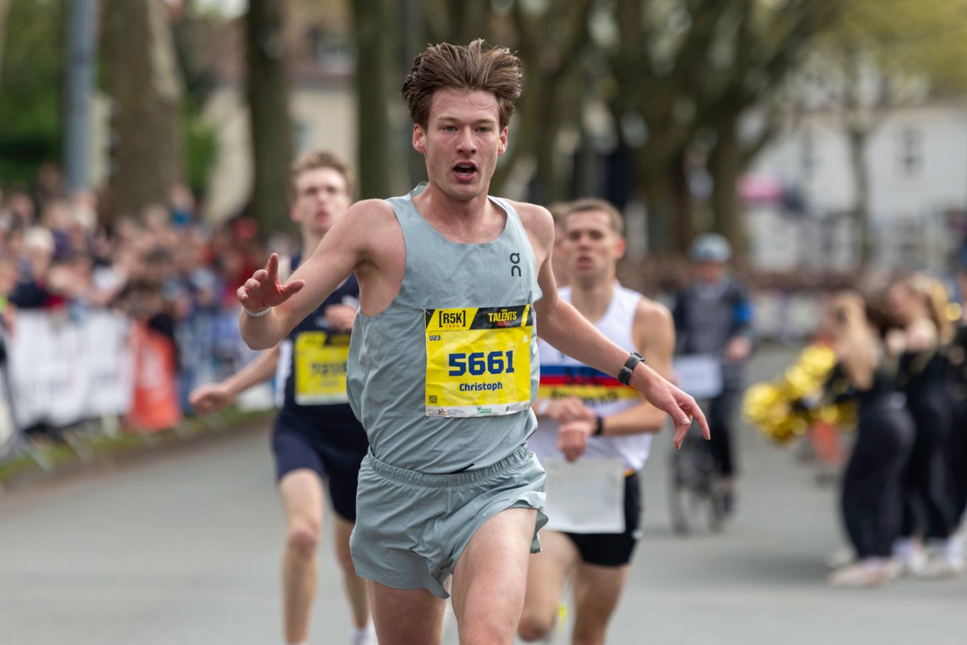 Es war eine Demonstration der Stärke, die drei Gesamtvorjahressieger der R5K-Tour in Paderborn ablieferten: Christoph Schrick (Königsteiner LV) gewann in der U23 das dritte Fünf-Kilometer-Rennen der vom Deutschen Leichtathletik-Verband (DLV) gemeinsam mit German Road Races (GRR) initiierten Serie für den Laufnachwuchs in 14:16 Minuten. Eine schnellere Siegerzeit wurde noch nie bei einem R5K-Rennen registriert, seitdem die Serie 2023 ins Leben gerufen worden ist. In der weiblichen U23 war Vanessa Mikitenko (SSC Hanau-Rodenbach) erfolgreich und in der U20 holte sich ihr Vereinskollege Tristan Kaufhold den den Sieg.