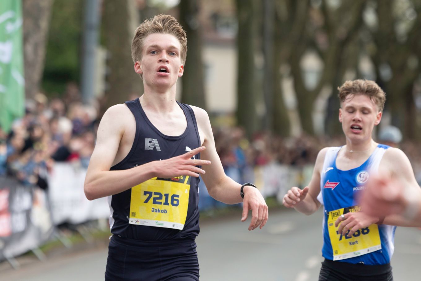 Aber auch dahinter hagelte es schnelle Zeiten: Jakob Dieterich (Frankfurt Athletics) kam als U23-Zweiter in 14:17 Minuten ins Ziel - zeitgleich mit Kurt Lauer vom VfL Sindelfingen und mit U20-Sieger Tristan Kaufhold (SSC Hanau-Rodenbach), der die wohl bemerkenswerteste Leistung des Tages ablieferte und 3,5 Sekunden schneller war als bei seinem schnellsten 5000-Meter-Rennen überhaut. 2024 war er auf der Bahn in Karlsruhe 14:20,47 Minuten gelaufen. „Mir hat es sehr gut gefallen heute“, schwärmte der Hesse vom Rennen in Paderborn, „wir hatten eine große Gruppe, die mit hohem Tempo gelaufen ist. Hinten raus konnte ich noch einmal angreifen und auf den zweiten Gesamtplatz laufen.“