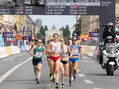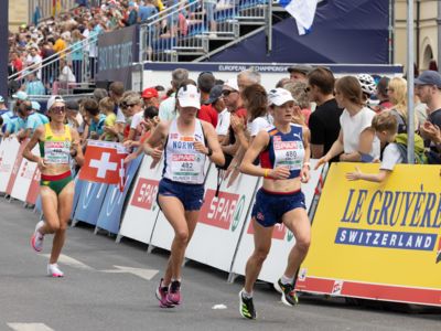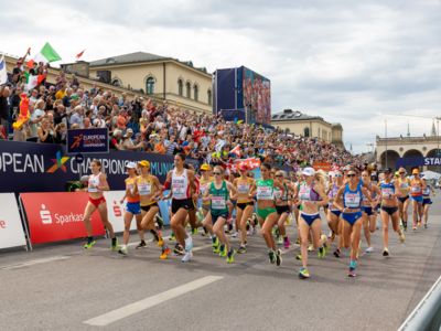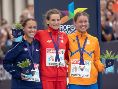 Neun Läuferinnen blieben bis Kilometer 35 zusammen in der ersten Gruppe, darunter Domenika Mayer und Miriam Dattke. Zwei Kilometer vor dem Ziel kämpften immer noch vier um die Medaillen: Aleksandra Lisowska, Matea Parlov Kostro, Nienke Brinkmann und Miriam Dattke, die zeitweilig auch führte. Auf der sehr langen letzten Geraden forcierte dann Aleksandra Lisowska das Tempo und setzte sich entscheidend ab. Hinter Matea Parlov Kostro kämpfte Miriam Dattke bis zum letzten Meter um die Bronzemedaille. Angefeuert von den Zuschauern kam sie noch einmal ganz dicht an Nienke Brinkmann heran, doch es reichte am Ende nicht ganz.