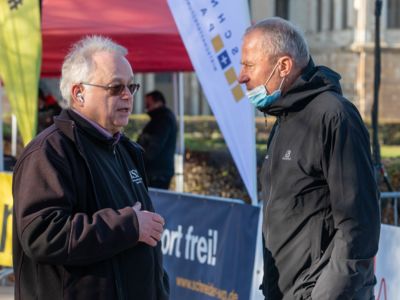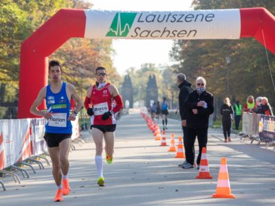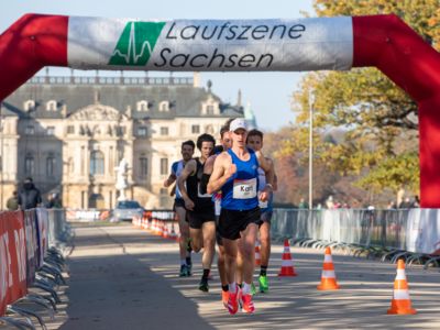 Im Halbmarathonrennen der Männer lief eine vierköpfige Spitzengruppe lange Zeit gemeinsam. Neben Richard Ringer (LC Rehlingen) setzte sich diese aus Aaron Bienenfeld (SSC Hanau-Rodenbach), Abootorabi Mohammadreza (Schweden) und Björn Koreman (Niederlande) zusammen. Die Entscheidung fiel dann erst in der letzten der 2,5 km langen Runden. Hier setzte sich der favorisierte Richard Ringer ab und gewann in 62:26. Damit verfehlte er seine eigene Bestzeit über die 21,0975-km-Distanz nur um 16 Sekunden. 2019 war er beim Berliner Halbmarathon 62:10 gelaufen. Mit seiner Dresdner Zeit platziert sich der 31-Jährige auf Platz zwei in der deutschen Jahresbestenliste hinter Amanal Petros (TV Wattenscheid/62:18).