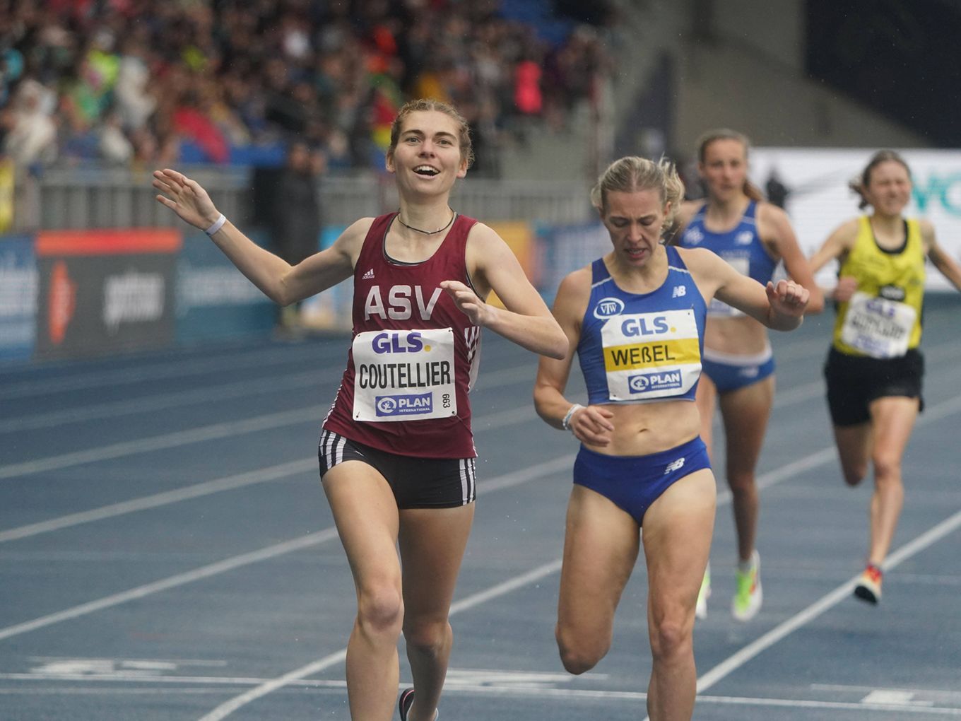 Über 1500 Meter setzte sich Vera Coutellier (ASV Köln) mit 4:12,60 Minuten gegen Nele Weßel (TV Waldstraße Wiesbaden/4:12,82 min) und Verena Meisl (TV Wattenscheid 01/4:14,56 min) durch.