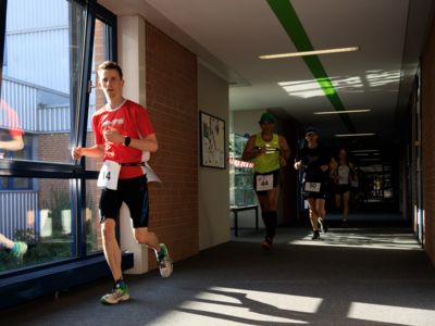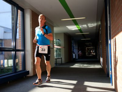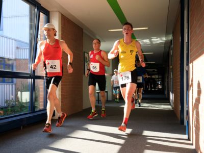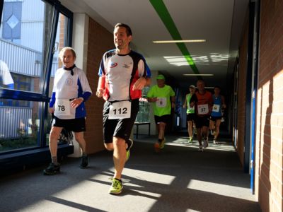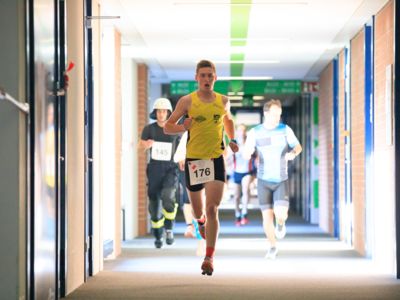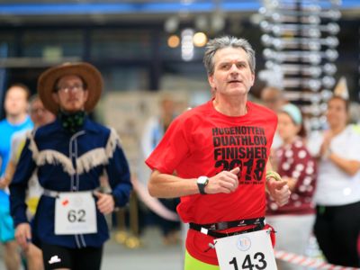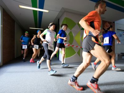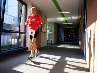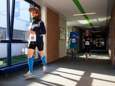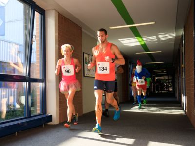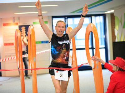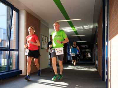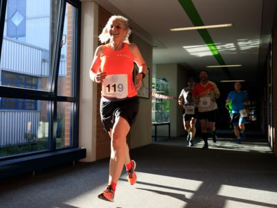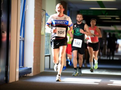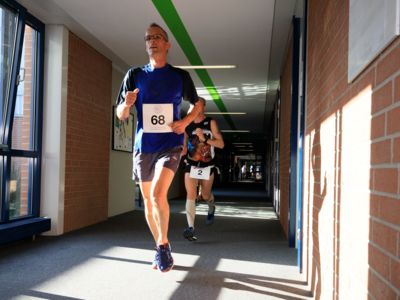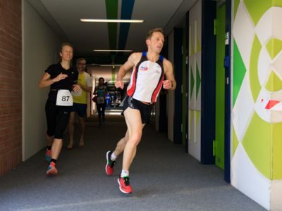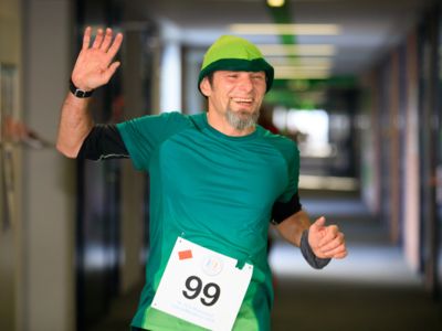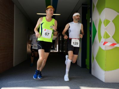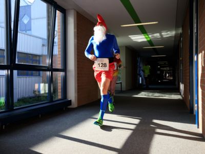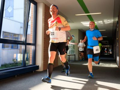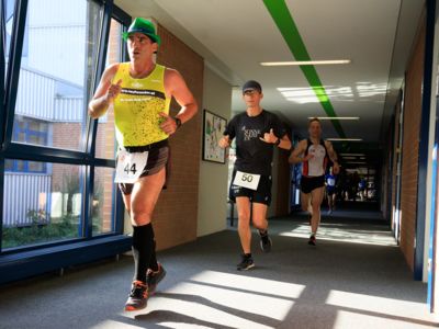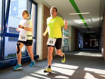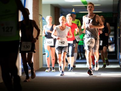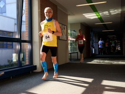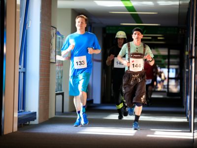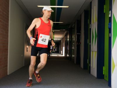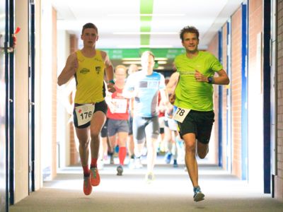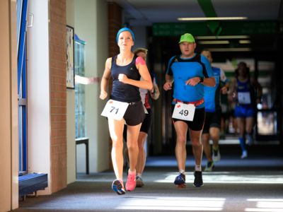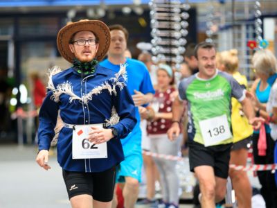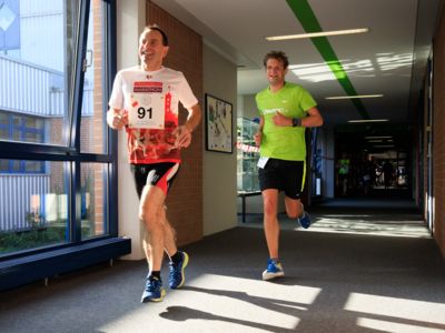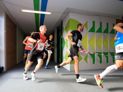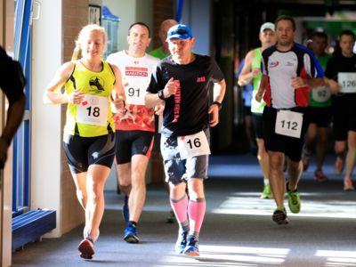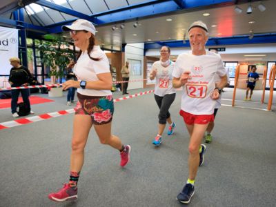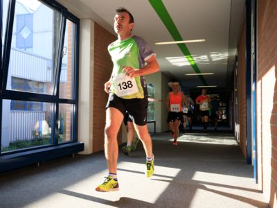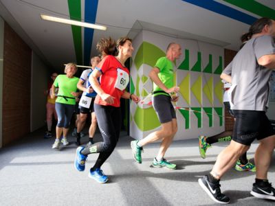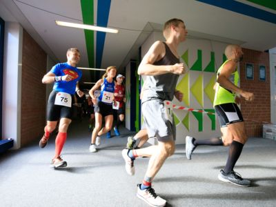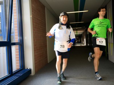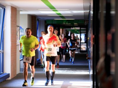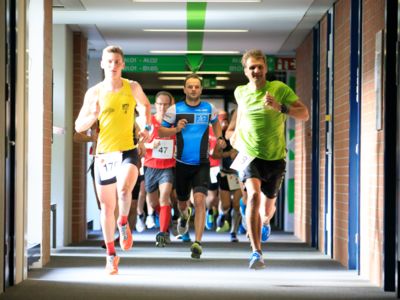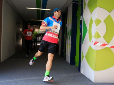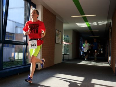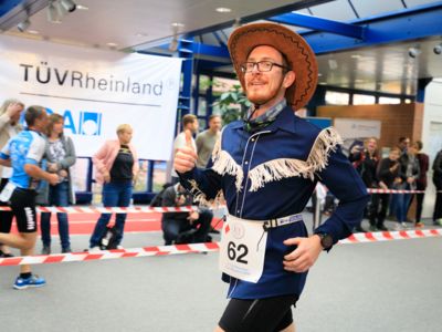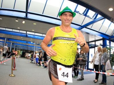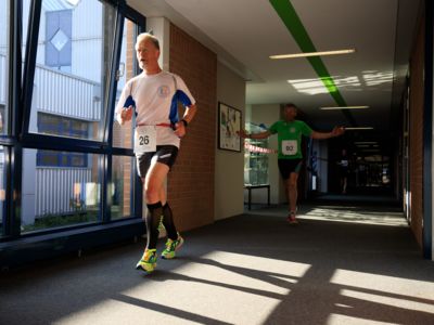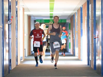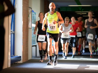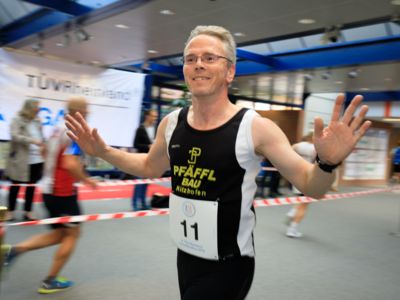 Der Rheinland Indoor Marathon ist einer der ungewöhnlichste Marathons: Er wird komplett in einem Bürogebäude in Nürnberg gelaufen. Auch in diesem Jahr standen wieder mehr als 350 Läuferinnen und Läufer an der Startlinie.