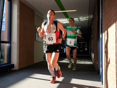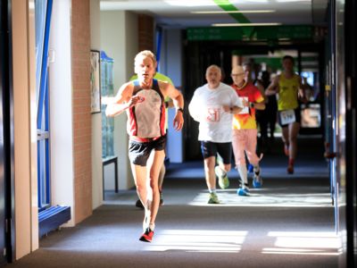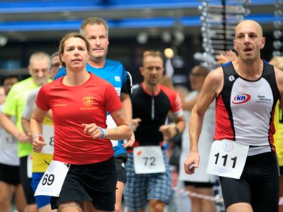 Der TÜV Rheinland Indoor Marathon ist einer der ungewöhnlichste Marathons: Er wird komplett in einem Bürogebäude in Nürnberg gelaufen. Auch in diesem Jahr standen wieder mehr als 350 Läuferinnen und Läufer an der Startlinie. Über zahlreiche Treppenstufen und lange Gänge führte der nicht einmal einen Kilometer lange Rundkurs des 14. Indoormarathons Nürnberg die Teilnehmer. Am schnellsten meisterte die Herausforderung Christian Jakob in 3:19:49 Stunden. Bei den Damen gewann Sybille Mai in 3:48:49 Stunden. Auf der halben Distanz setzten sich der Äthiopier Endisu Getachew in 1:19:31 Stunden und Brigitte Schoch aus der Schweiz in 1:43:12 Stunden durch. Hier gibt's die Fotos.