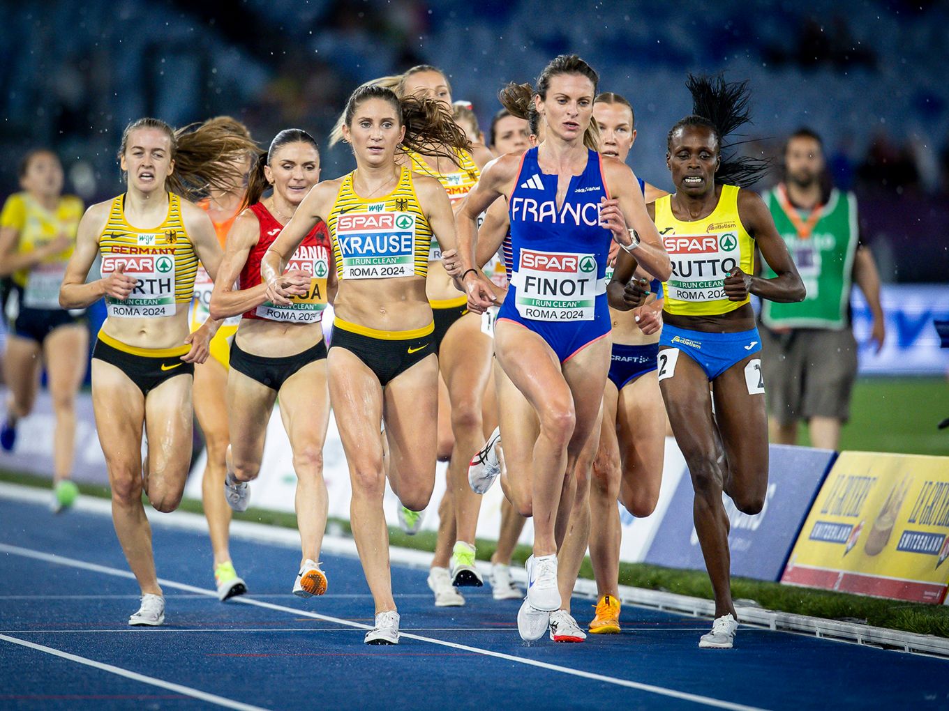 Hinter der am Ende souveränen Französin Alice Finot, die in 9:16,22 Minuten gewann, war Gesa Krause (Silvesterlauf Trier) nach 9:18,06 Minuten knapp vor der am Ende noch stark aufkommenden Britin Elizabeth Bird (9:18,39 min) im Ziel. Die EM-Zweite von München 2022, Lea Meyer (TSV Bayer 04 Leverkusen), musste sich in diesem Finale im Olympiastadion von Rom mit Rang neun in 9:27,85 Minuten zufriedengeben. Olivia Gürth (Silvesterlauf Trier) belegte Rang elf mit 9:31,98 Minuten.