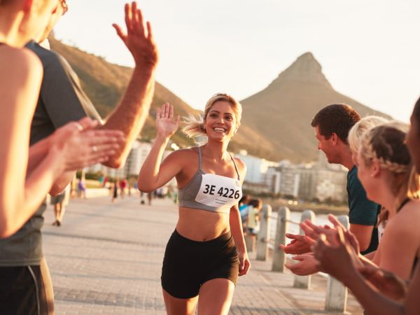 Versuche den Wettkampftag so entspannt wie möglich anzugehen, stehe rechtzeitig auf und begib dich rechtzeitig und ohne Stress zum Start. Natürlich steigt jetzt die Nervosität, aber spätestens mit dem Startschuss sollte dies überstanden sein. Dann heißt es das richtige Tempo zu finden: Suche dir möglichst eine Gruppe, die annähernd dein anvisiertes Tempo läuft. Teile dir die Strecke gedanklich in kürzere Abschnitte ein (zum Beispiel Verpflegungsstationen) und kontrolliere deine Zwischenzeiten. Das Wichtigste aber ist: Verliere auch beim Wettkampf niemals die Freude am Laufen, es ist schließlich dein Hobby und soll vor allem Spaß machen.