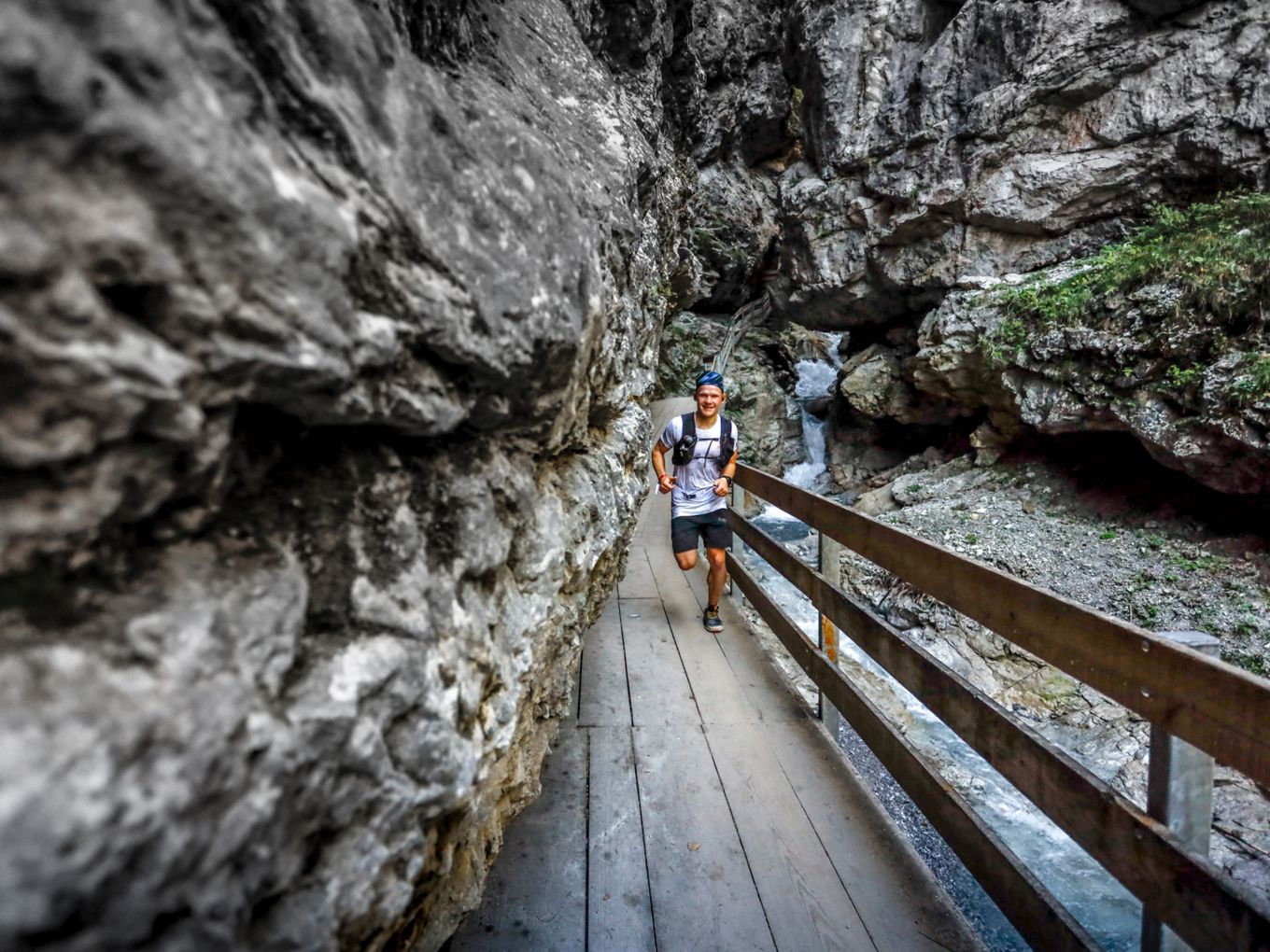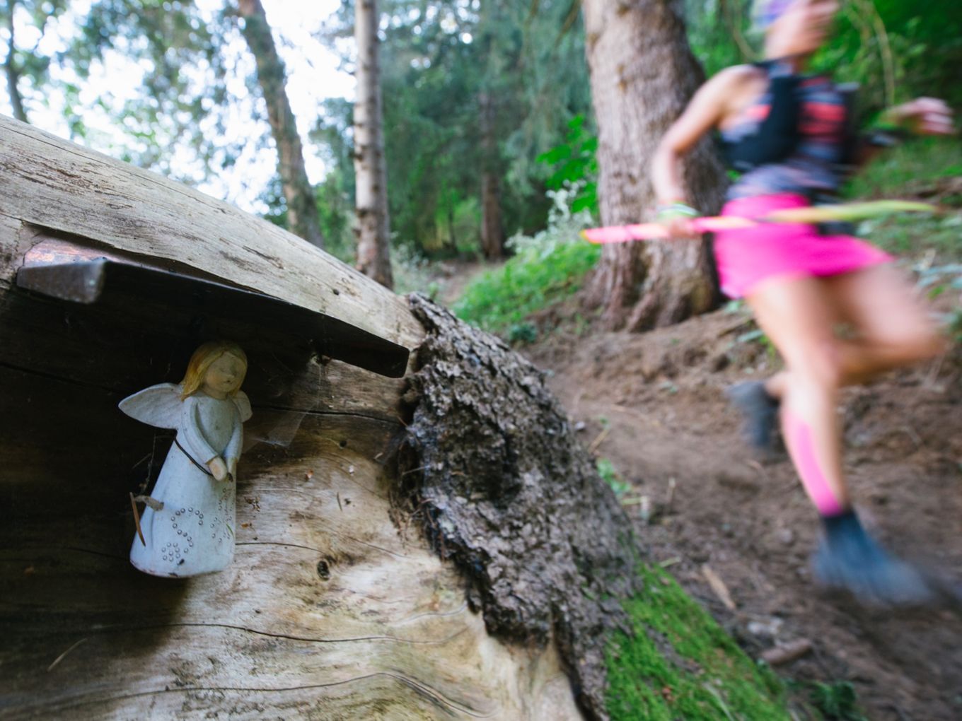 War der Lauf so hart, dass der Kollege angefangen hat zu halluzinieren? Immerhin war die Sonneneinstrahlung an diesem Septembersamstag im Spätsommer 2020 noch ziemlich hoch. Und die Strecke beim Starkenberger Homerun hatte es in sich: 25,7 Kilometer. 1061 Höhenmeter im Aufstieg. Meistens auf steilen, schmalen Pfaden durch den Bergwald. 1228 Meter im Abstieg. Davon ein guter Teil in der Rosengartenschlucht nahe Imst mit ihren steilen, felsigen und anspruchsvoll zu laufenden Wegen.