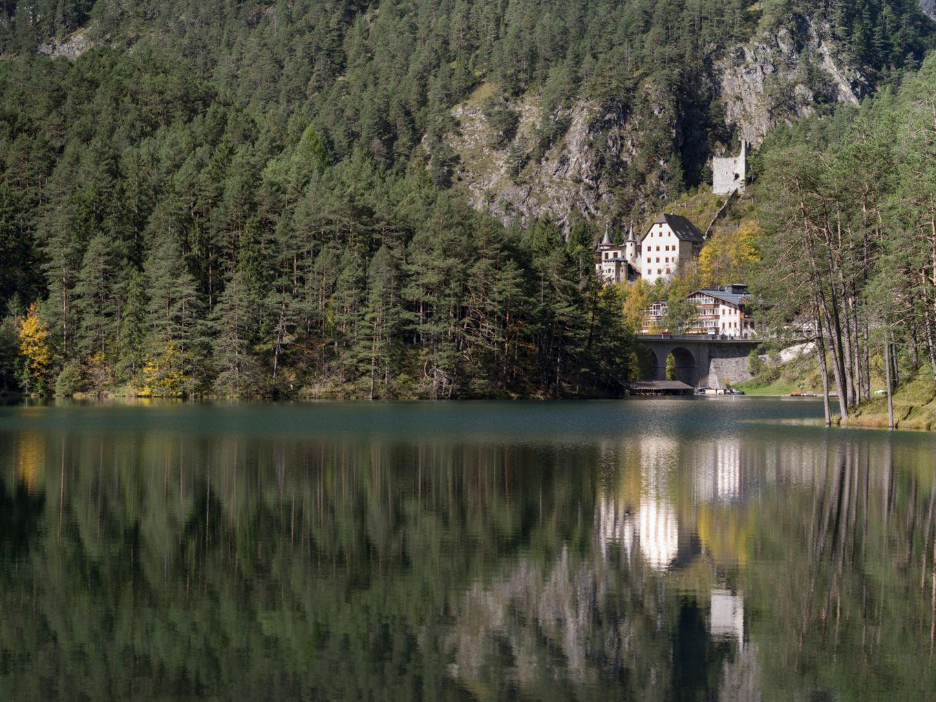 Wir Trailrunner bekommen da schon mehr zu sehen. Unsere Strecke führt von der Burg Fernstein, die wie ein mächtiger Wächter über der Route zum Fernpass thront, erstmal auf Forstwegen leicht bergab. Ideal zum zügigen Einrollen mit tollen Ausblicken in Richtung der Ötztaler Alpen im Süden, bevor sich dann nach fast zehn Kilometern alles ändert. Vom Forstweg biegt die Strecke direkt in den Bergwald ab. Durch den geht es jetzt fast 1000 Höhenmeter steil bergauf.
