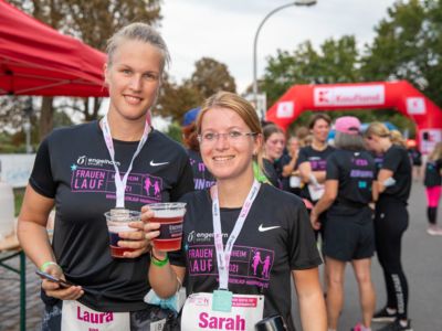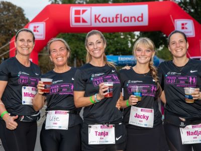 Im Ziel angekommen gab es für die Teilnehmerinnen erst einmal ein kühles Getränk von und Wasser und Obst vom neuen Hauptsponsor Kaufland. DJane Katja sorgte für tolle Feierstimmung. Grund zum Feiern gab es dann noch für einige bei der Siegerehrung, die noch am selben Abend stattfand. Schnellste Läuferin in der Altersklasse bis 39 Jahre wurde Merle Brunnée vom MTG Mannheim – Engelhorn Sports Team in 17:45 Minuten. In der Altersklasse ab 40 schnappte sich Katja Coneus den Titel der schnellsten Läuferin in einer Zeit von 19:16 Minuten.