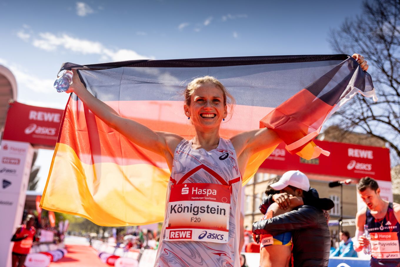 Für eine Überraschung sorgte Fabienne Königstein (MTG Mannheim), die als Achte mit 2:25:48 ihre bisherige persönliche Bestzeit (2:32:35) um fast sieben Minuten verbesserte. Nach einer Halbmarathon-Zwischenzeit von 1:12:41 konnte sie ihr Tempo fast halten. Fabienne Königstein, die nach einer Babypause ihren ersten Marathon seit 2018 lief, ist nunmehr die sechstschnellste deutsche Läuferin aller Zeiten. „Ich bin das Rennen so mutig wie möglich angegangen, denn das ist mein Laufstil. Ich hatte für dieses Rennen kaum Marathon-Vorbereitung, wodurch natürlich die Erwartungshaltung in Zukunft noch größer werden wird“, sagte die 30-Jährige. „Es ist besser gelaufen als ich mir je erträumt hatte.“